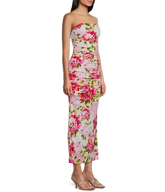 Honey and Rosie Strapless Floral Print Shirred Midi Dress
