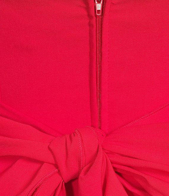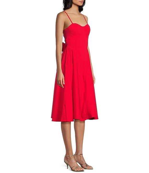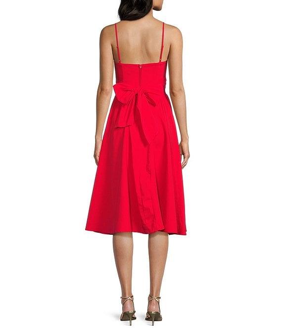 From Honey and Rosie, this dress features: Sweetheart neckline Sleeveless Adjustable spaghetti straps Bra cups for added support Elastic-back top edge Bow-accented back Zippered back Lined bodice 38 1/2" length Rayon/nylon/spandex; lined bodice Machine wash/tumble dry Imported.