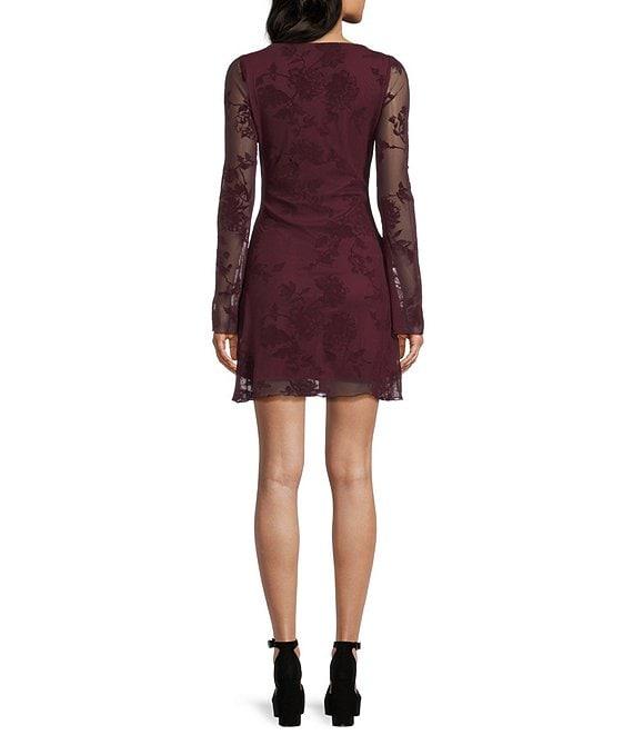 From Honey & Sparkle, this dress features: Flocked mesh fabric Floral print Boat neckline Long bell sleeves Pullover styling Polyester/spandex; lined Machine wash; tumble dry Made in the USA.