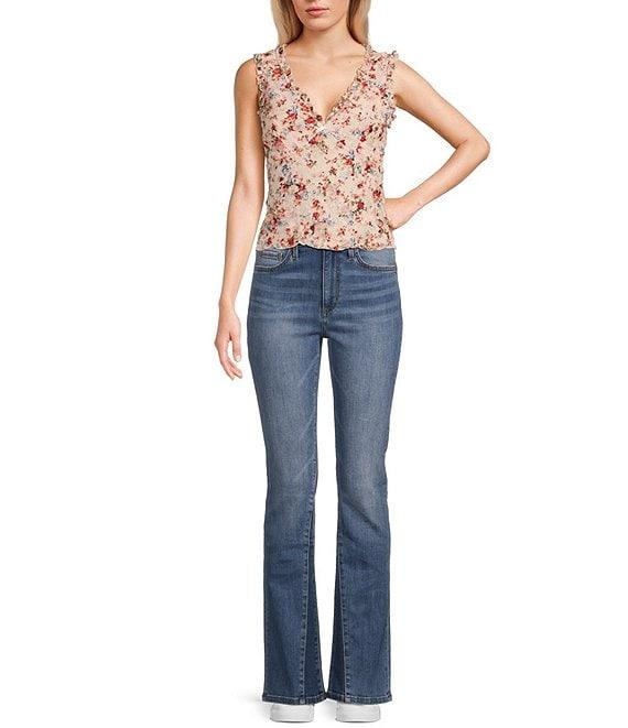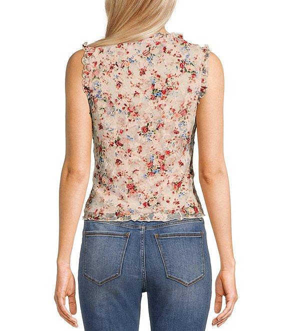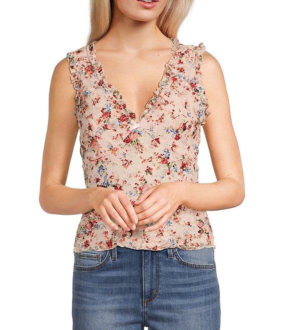Honey & Sparkle Floral Print Ruffled V-Neck Sleeveless Lined Lace Top