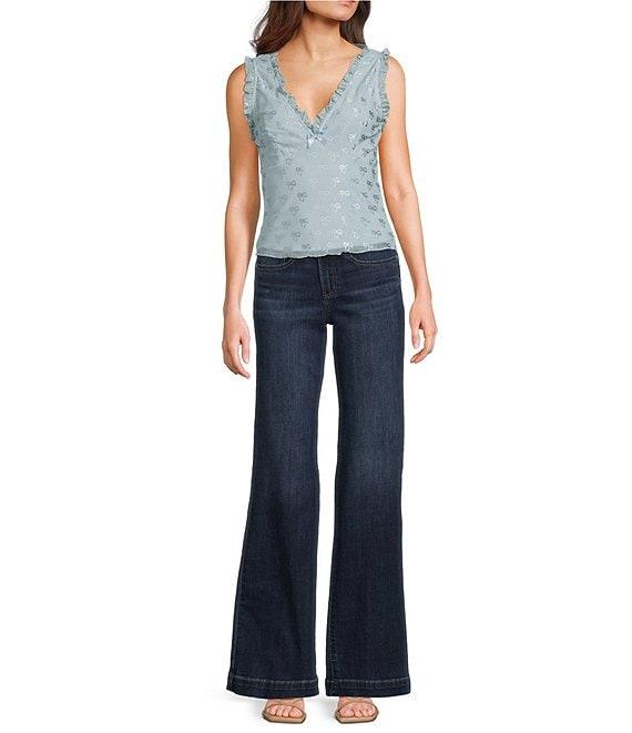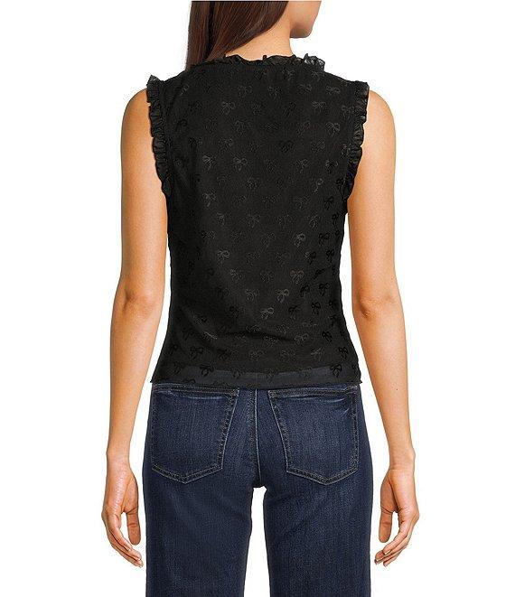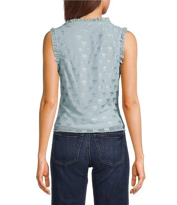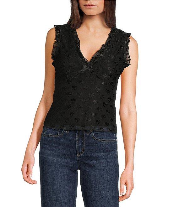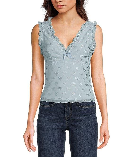 Honey & Sparkle Mesh V-Neck Ruffle Edge Lined Bow Trim Top