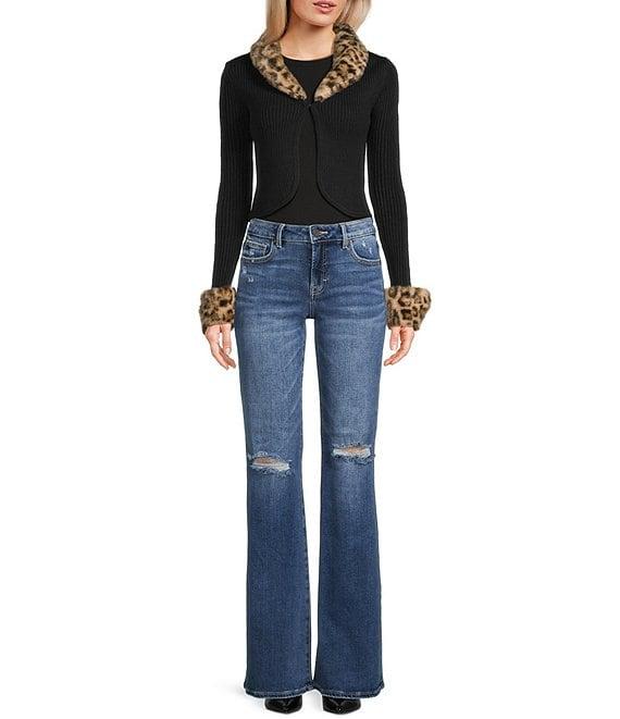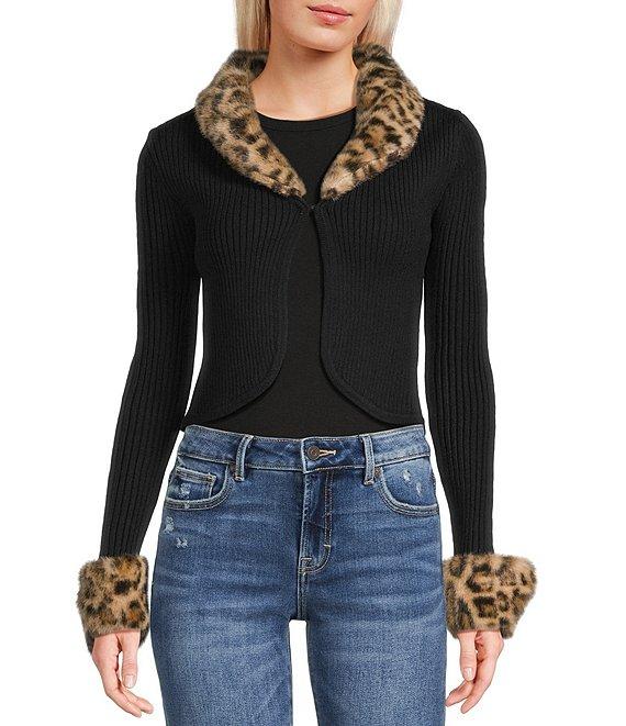 Honey & Sparkle Removable Faux Fur Collared Long Sleeve Cardigan