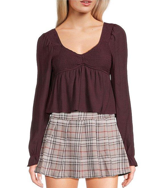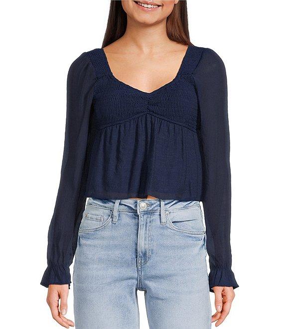 Honey & Sparkle Smocked V-Neck Long Puff Sleeve Top