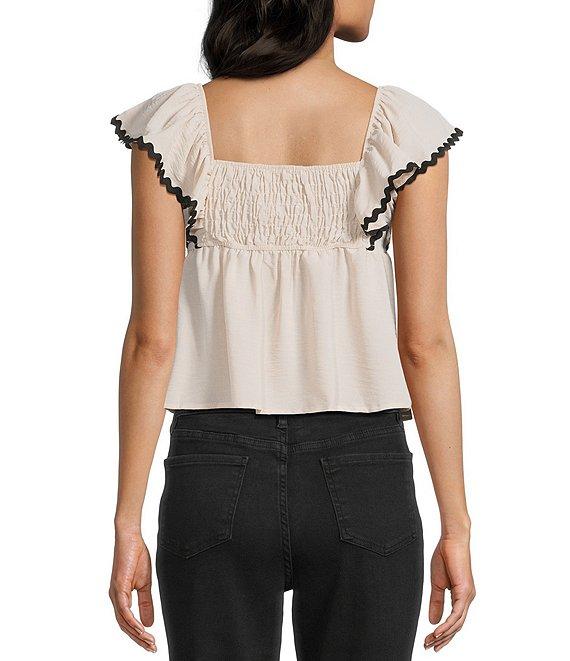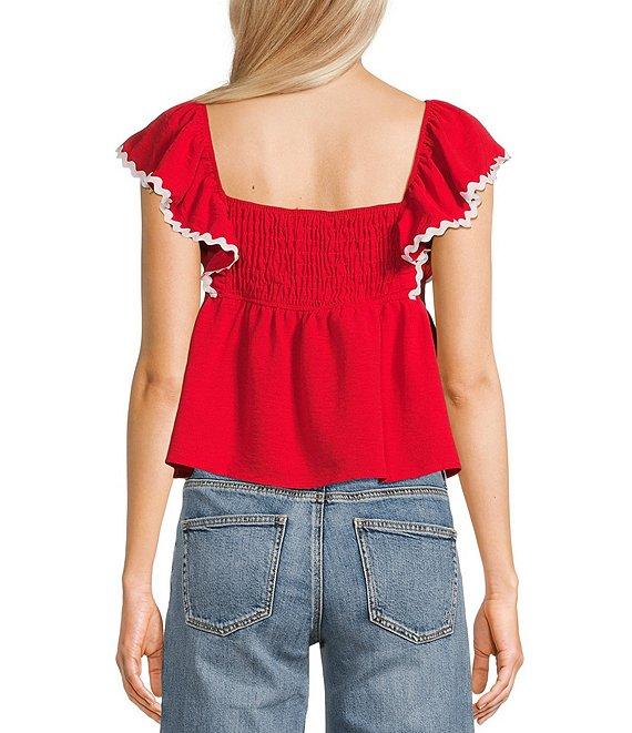 Honey & Sparkle Sweetheart Neck Ric Rac Trim Ruffle Sleeve Top