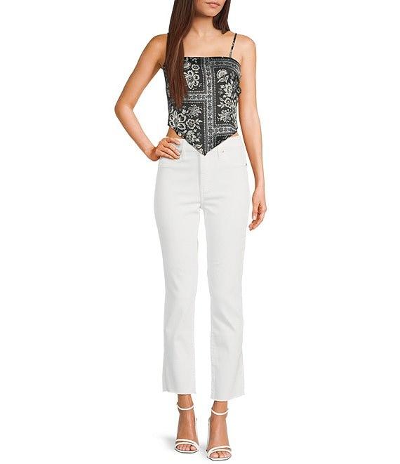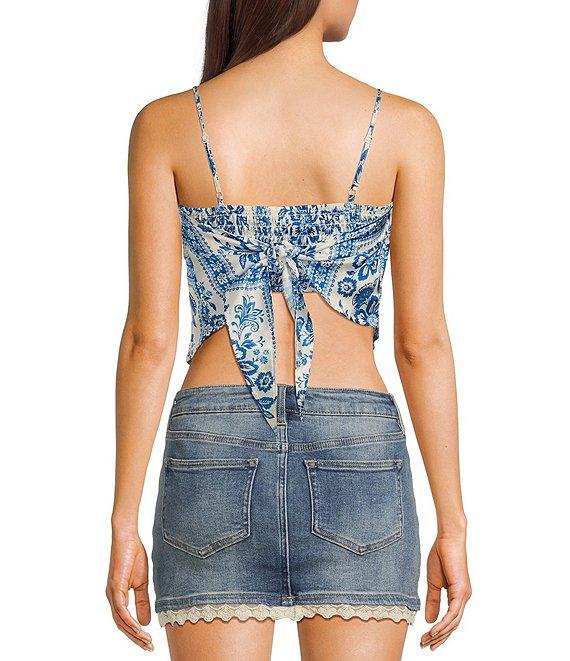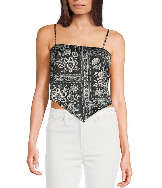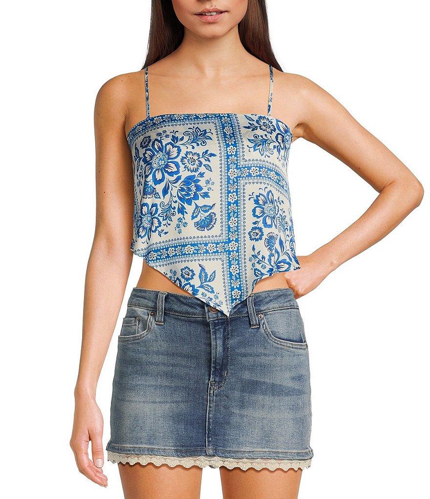 Honey & Sparkle Woven Printed Satin Spaghetti Strap Hanky Hem Top