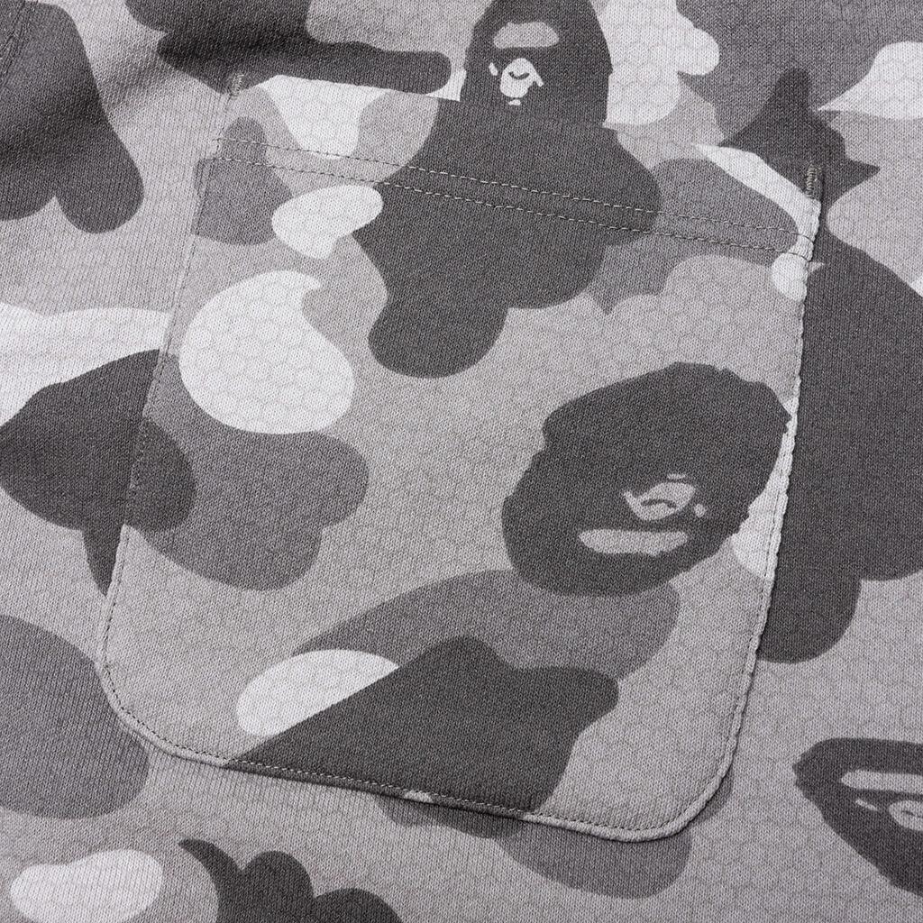 Featuring a cotton construction, A Bathing Ape’s Honeycomb Camo Shark Sweat Shorts make an impression with their all-over camo print and screen-printed shark graphics. The side pockets, rear pocket, and elastic waistband finish up the rest of the look. 100% cotton Elastic waistband Side pockets Rear pocket Screen-printed graphics All-over print Style No: 001SPJ301009M-GRA