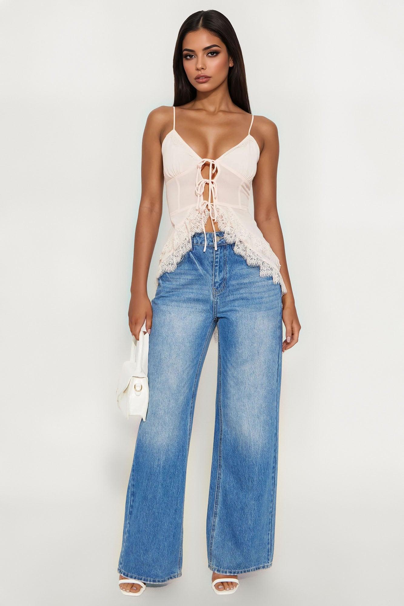 Honeymoon Lace Chiffon Flyaway Top - Pink Female