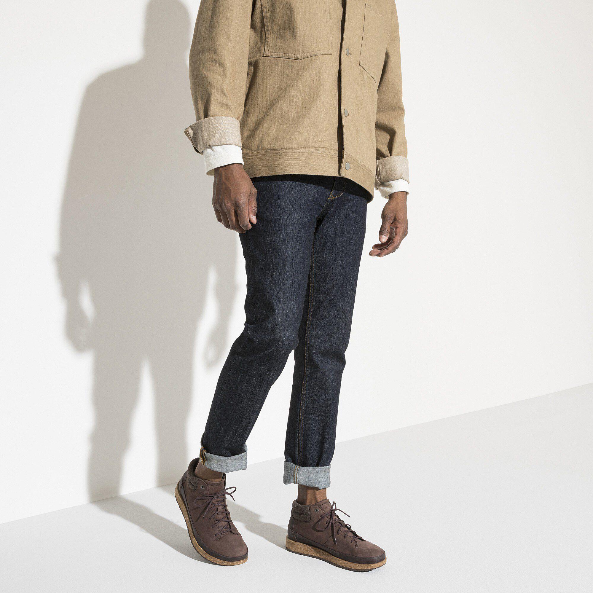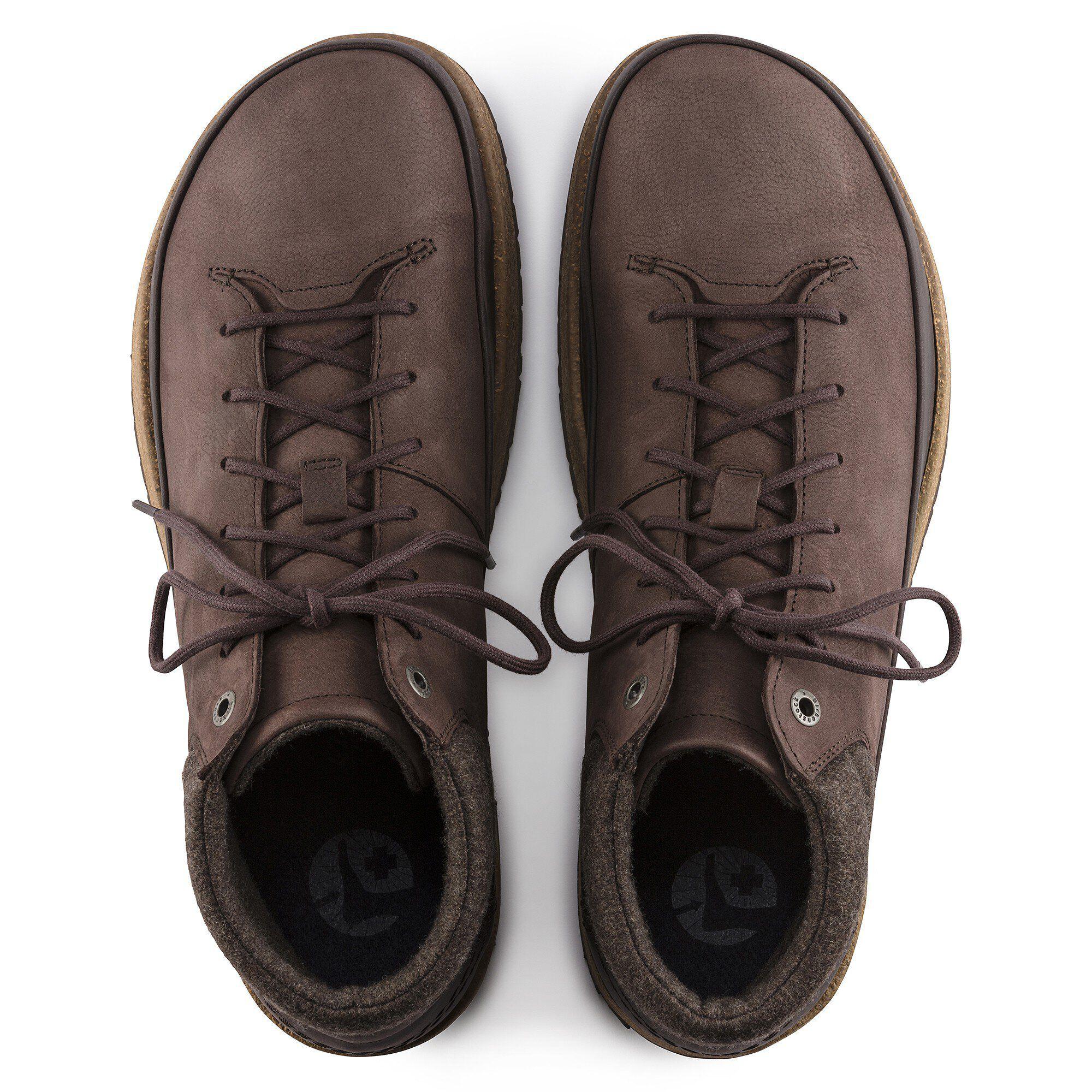 Presenting the BIRKENSTOCK Honnef High - our newest street smart ankle boot engineered completely around our new Deep Blue Footbed. The four part footbed includes a moisture wicking microfiber liner, cork and jute layers for optimum arch support and a PU base for added shock absorption and forefoot cushioning. The sporty lace up style is perfect for your most active days, whether that’s all day around town or on your next travel adventure, The oiled nubuck upper is durable and easy to clean, fully adjustable lacing for optimum fit, wool synthetic lining for internal temperature control and injected rubber outsole for added grip and durability.