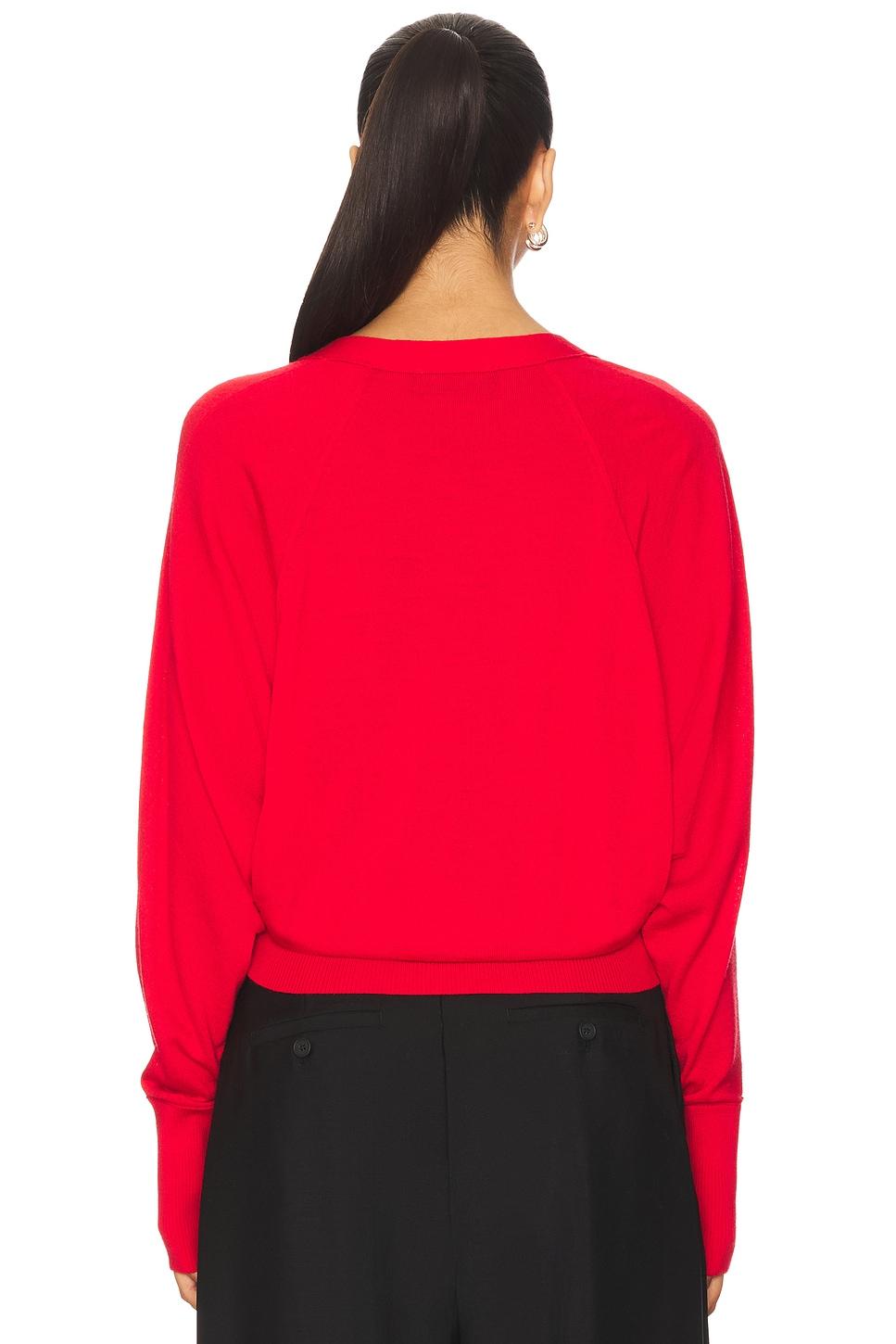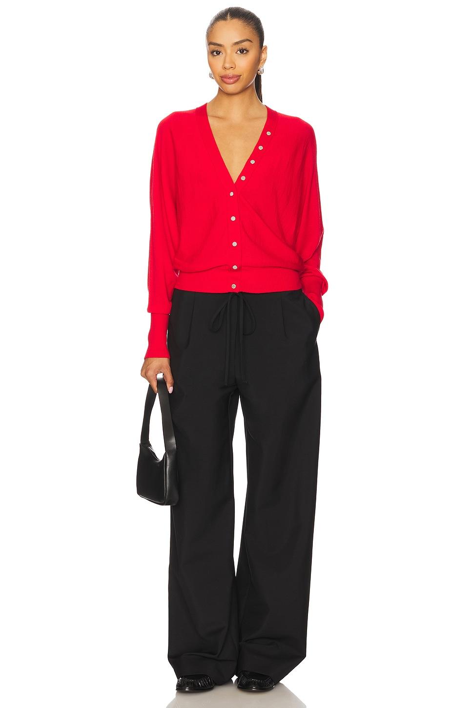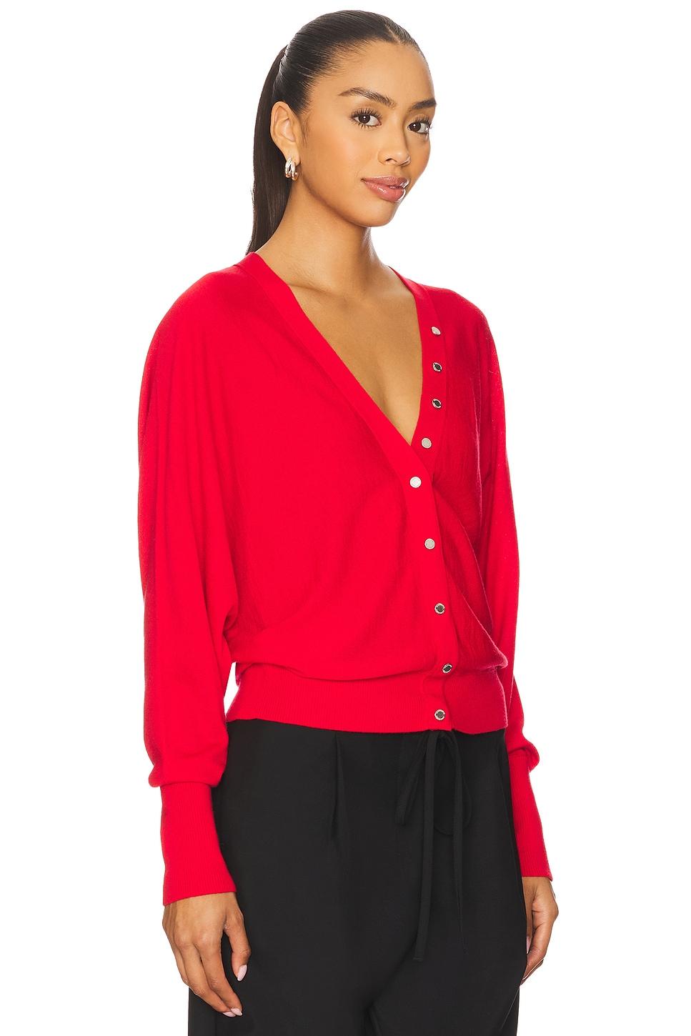 Body: 100% wool Trim: 85% wool, 13% polyamide, 2% elastane. Hand wash recommended. Front silver-tone snap button closure. V-neck design. Ribbed trim. Cropped fit. Midweight knit fabric. Made in China. Revolve Style No. ALLR-WK126. Manufacturer Style No. W002KD.