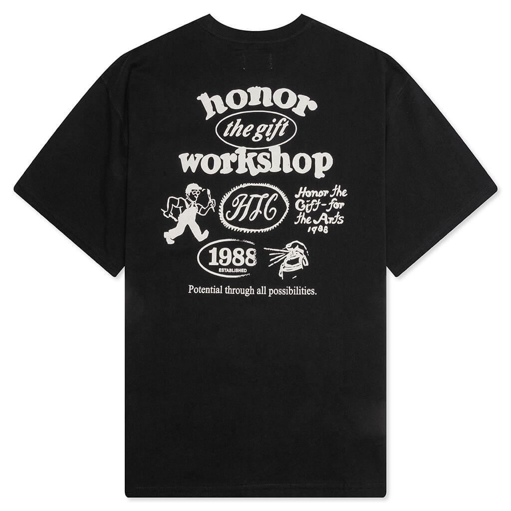 Honor the Gift presents the Honor Workshop Tee in their latest collection. Cut from premium cotton with a regular fit, this tee features a ribbed crew neckline for everyday comfort. Screen-printed graphics complete the look with signature Honor the Gift personality. 100% Cotton Regular fit Crew neckline Ribbed collar Screen-printed graphics Style No: HTG250391-BLK HTG250391 BLAC