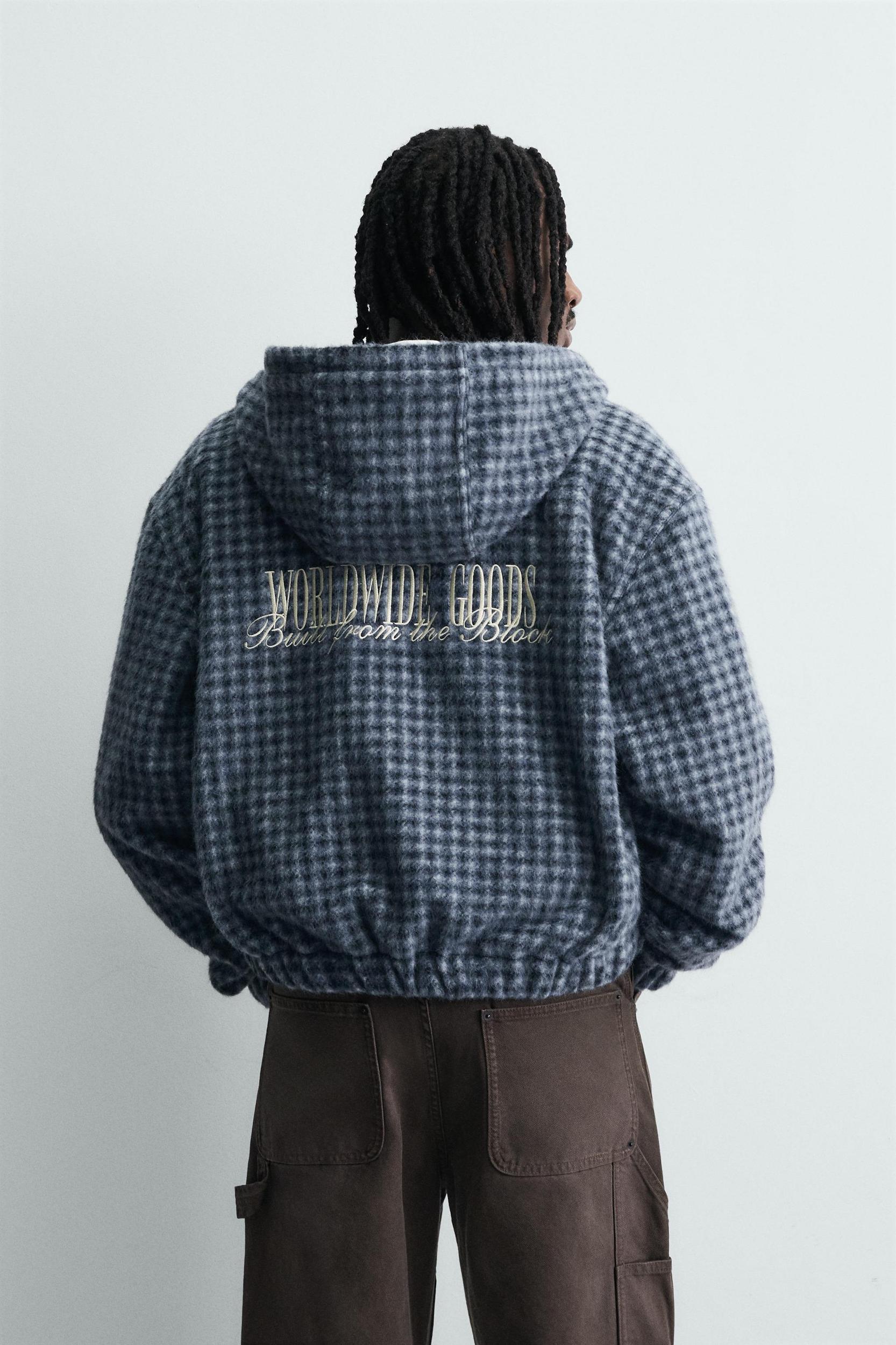 HOODED EMBROIDERED PLAID OVERSHIRT