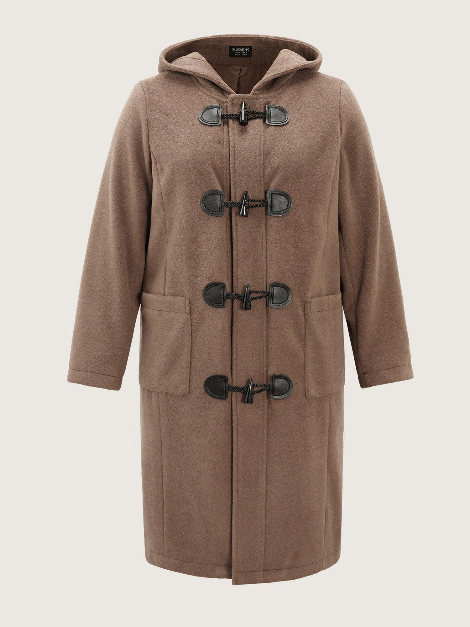 Shop Hooded Relaxed-Fit Horn Button Long Coat now and redefine your style with confidence at BloomChic. Tailored for mid and plus-size women. This trendy Outerwear Women, sizes 10-30. Color:Browncoffeecolor;Style:Leisure;Prints:Non;Details:Button;Pocket:Patch pocket;Belt:No-belt;Closure Type:Button;Lining:Lining