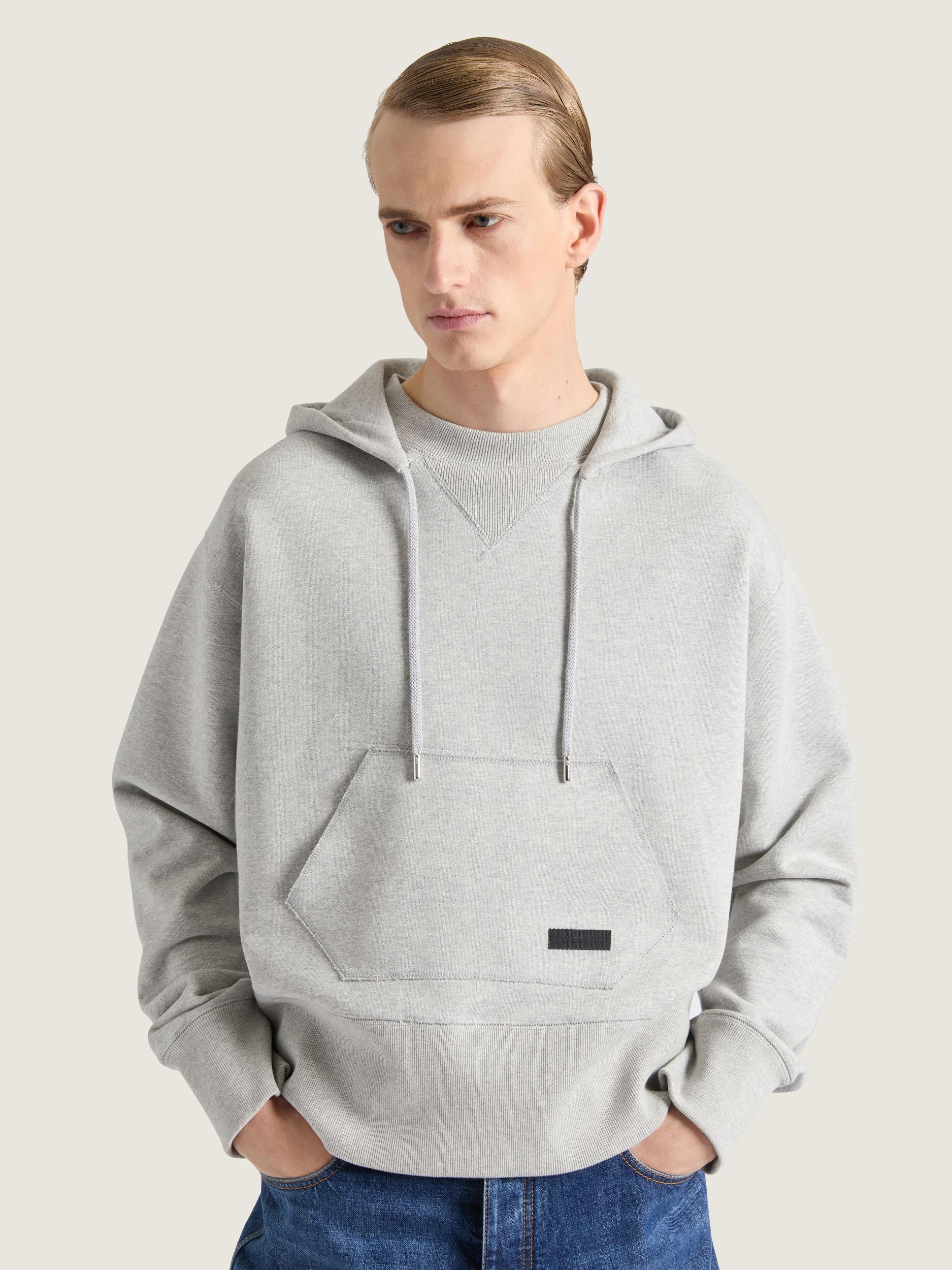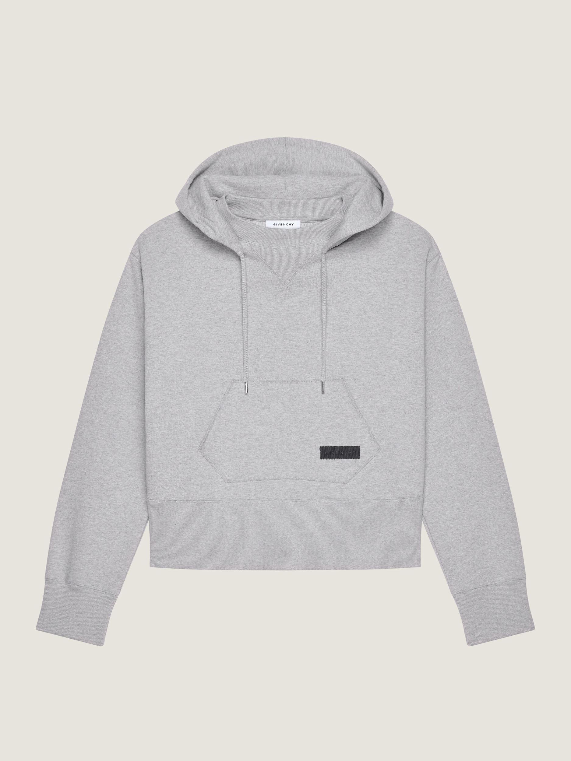 Long-sleeved hooded sweatshirt in fleece. Gros grain patch with GIVENCHY signature and zigzag seams on the front pocket. Drawstring on the hood. One kangaroo pocket on the front. Ribbed hem and cuffs. Model measures 6.1 Feet and wears a size M.