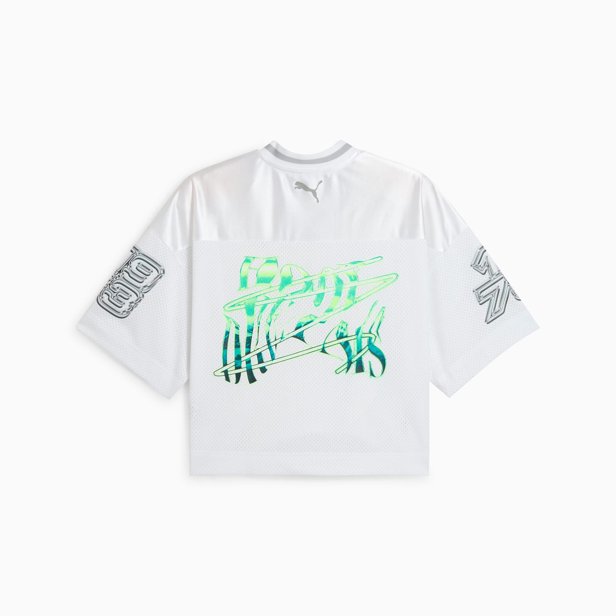 This cropped basketball-inspired jersey has colorful graphics and bold PUMA basketball branding. Designed for those who love to stand out it's perfect for showing off your love for the game.