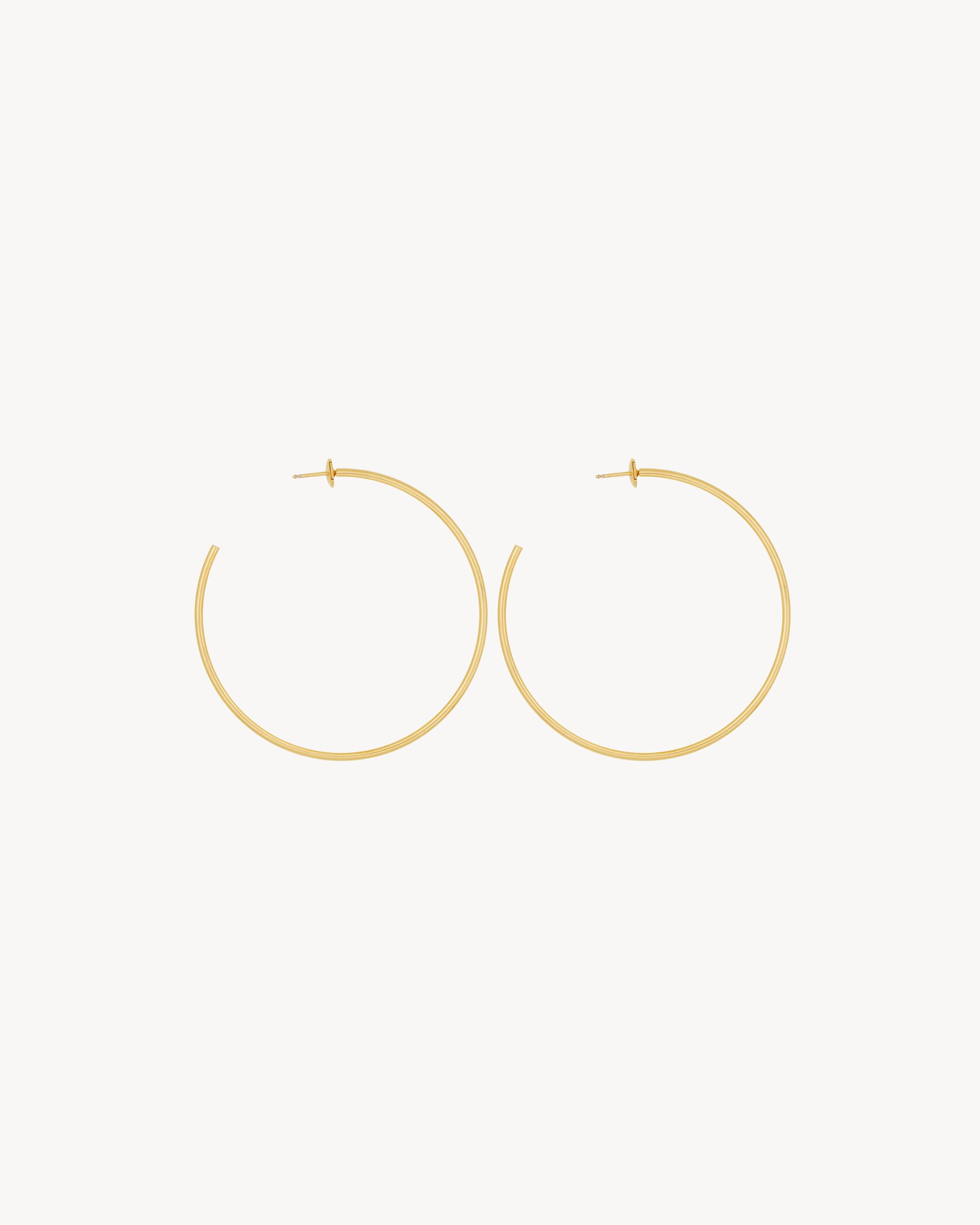 open hoop earrings.GOLD IS A PRECIOUS MATERIAL THAT IS MALLEABLE AND HIGHLY SENSITIVE TO SCRATCHING. THE PRODUCT IS EXPECTED TO EVOLVE AND PRESENT MARKS THROUGHOUT ITS LIFECYCLE. MOREOVER, AS GOLD IS A SOFT ALLOY, PIECES SHOULD NOT BE STACKED ONE ON TOP OF THE OTHER TO AVOID DAMAGING THEM. EVERY PIECE OF JEWELRY MUST BE STORED IN ITS ORIGINAL PACKAGING TO AVOID ANY FRICTION WITH OTHER OBJECTS THAT COULD SCRATCH IT. WHEN PART OF A SET, PIECES MUST BE STOCKED SEPARATELY.