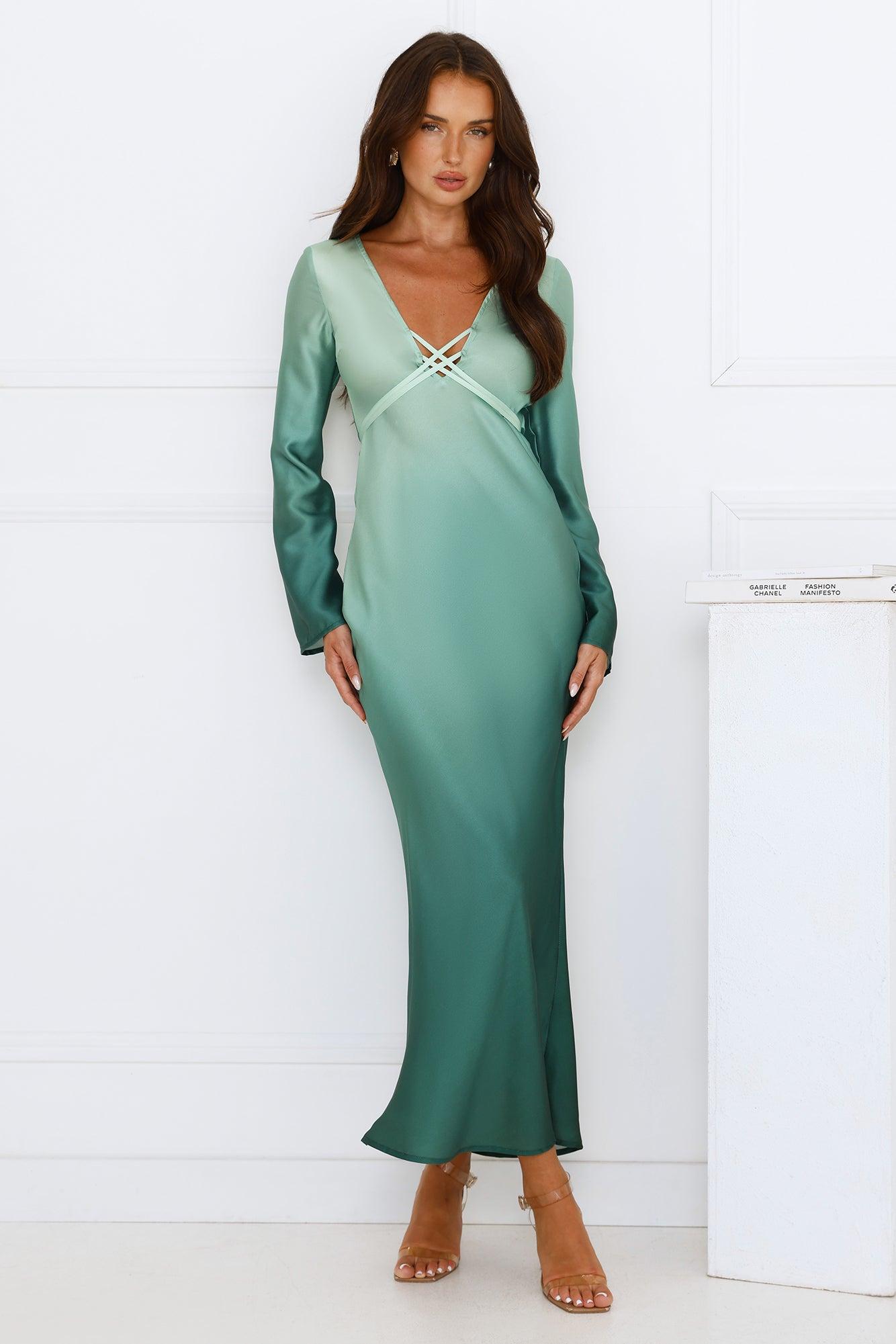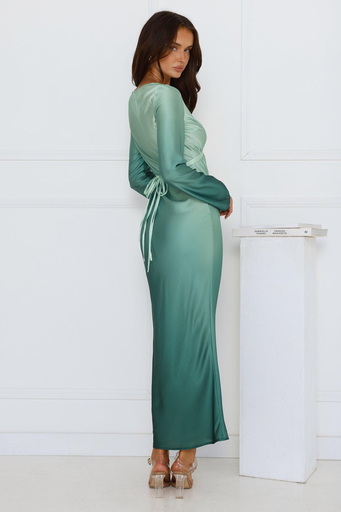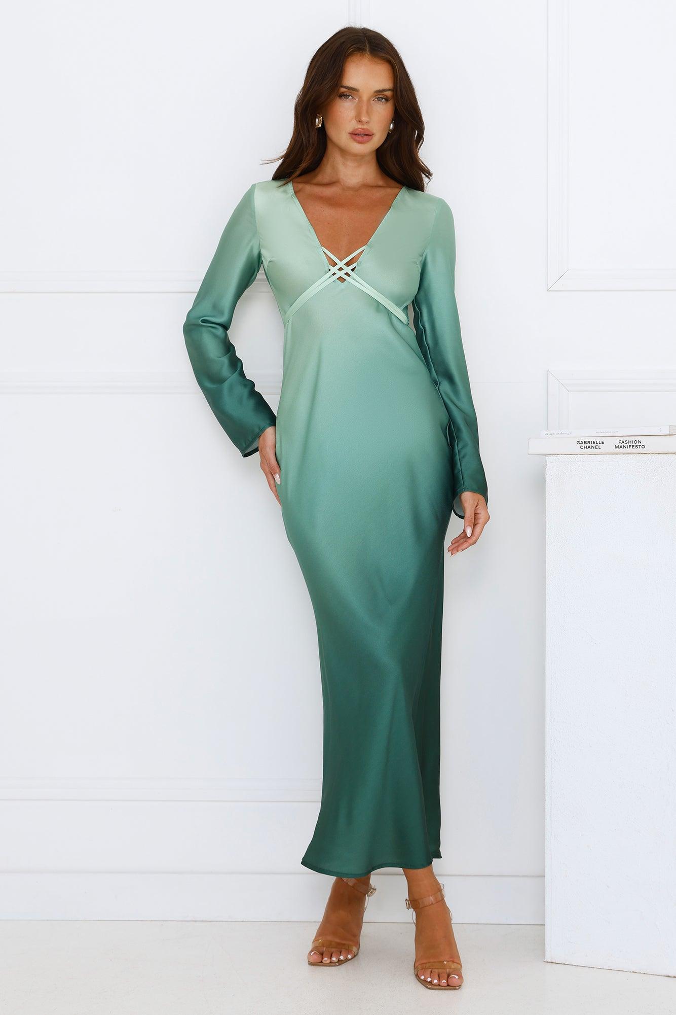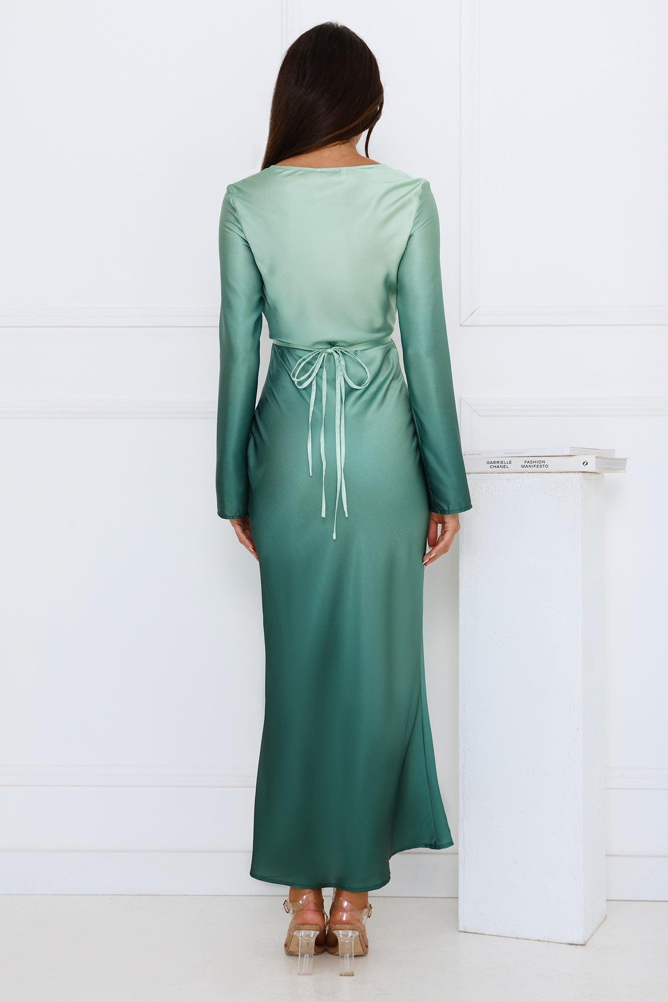 Horizon Hues Satin Long Sleeve Midi Dress Green Ombre