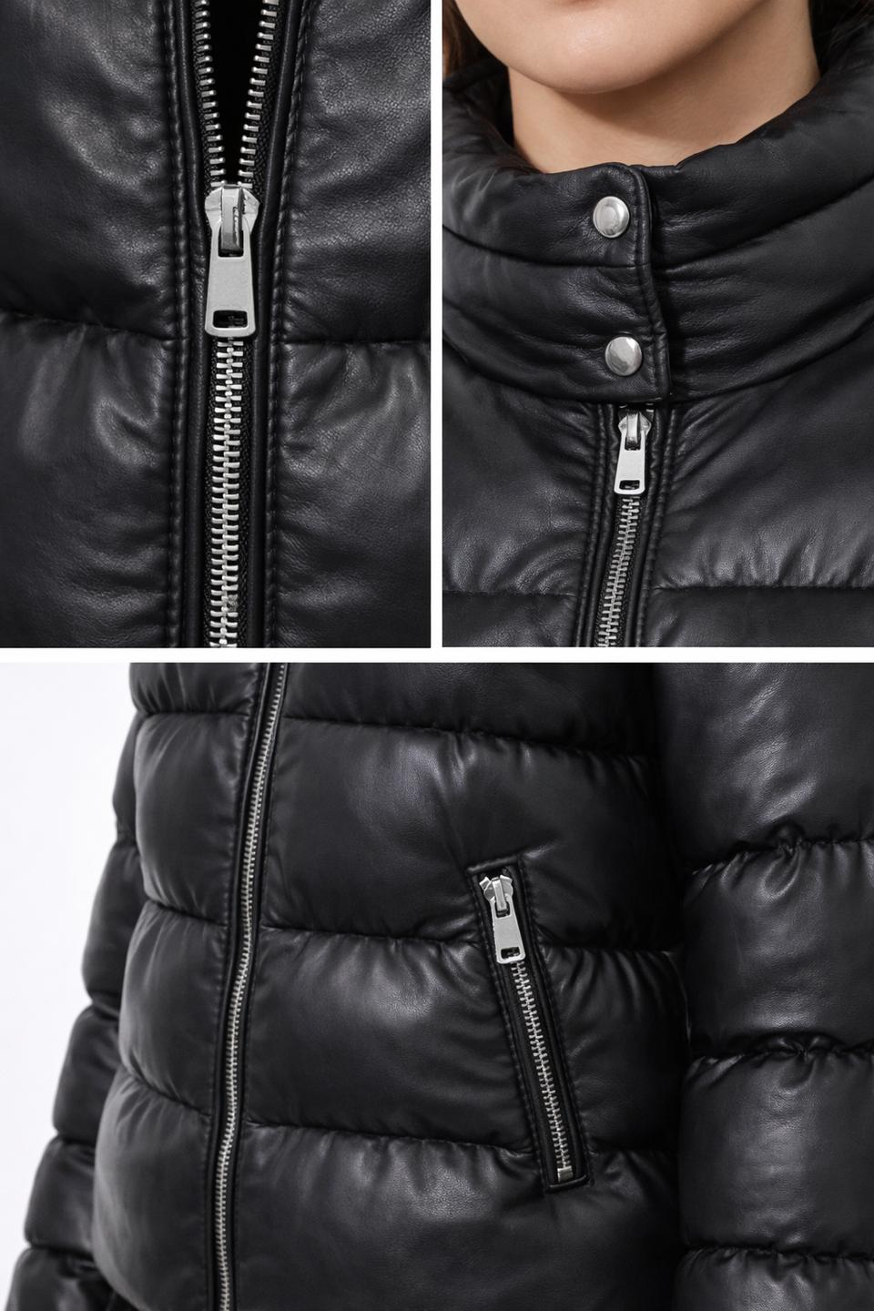 Horizontal Leather Down Puffer Jacket-Maximilian