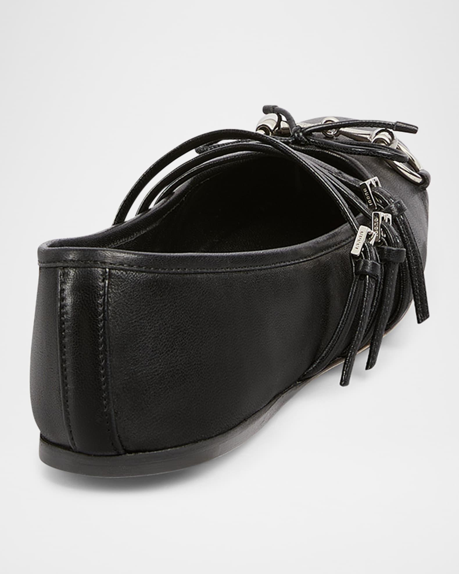 Gucci ballerina flats in supple lambskin leather 0.25 in / 10 mm flat heel Squared tucked toe cap Silvertone horsebit Delicate bow detail Three Mary Jane buckle straps Soft padded insole Leather lining and outsole Spot clean, professional cleaning recommended Made in Italy Size Note: Runs true to size.