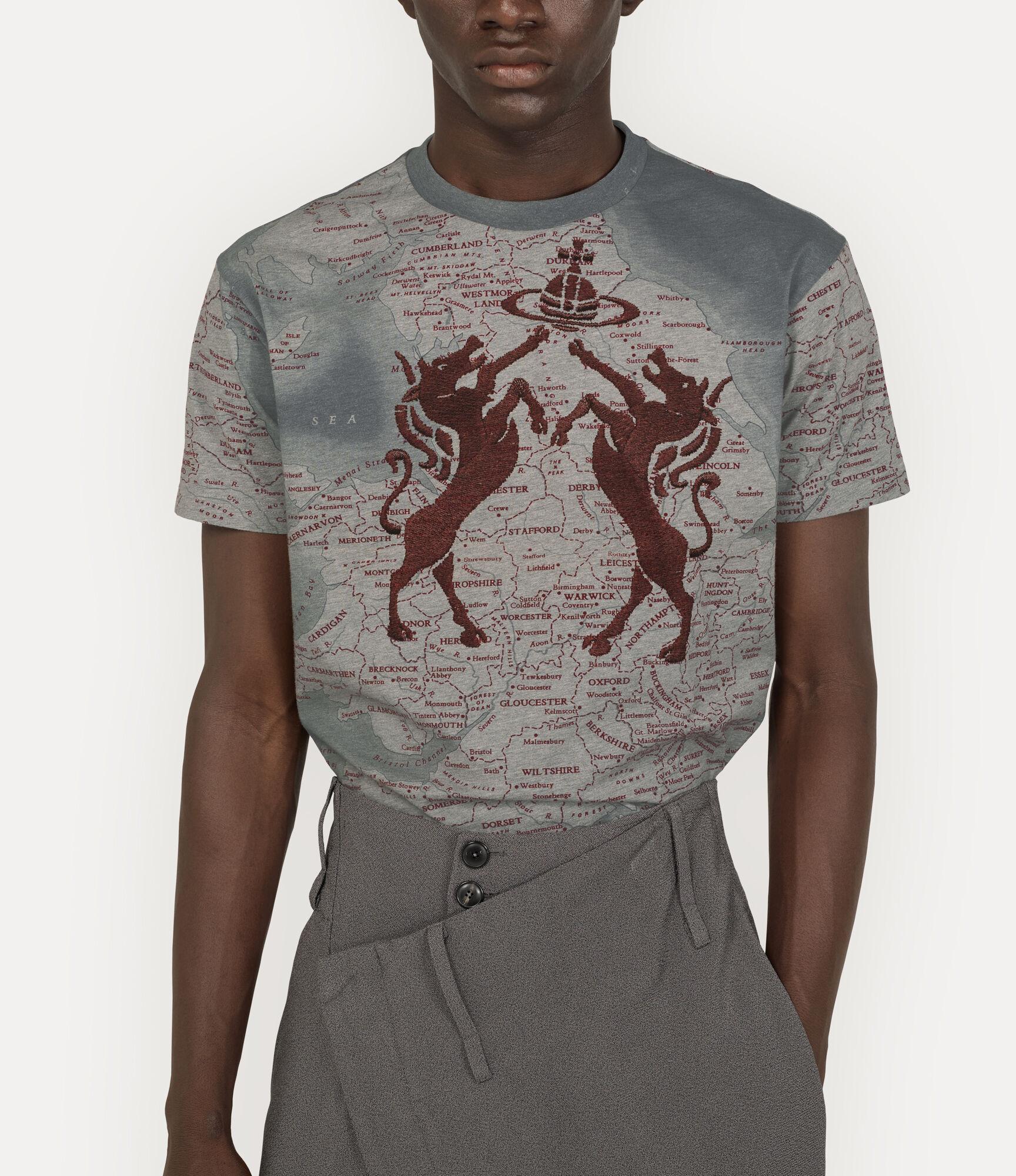 Our Classic t-shirt is crafted from soft cotton and features a map of the UK printed across the background, overlaid with the ‘Horses and Orb’ heraldry as a nod to the Year of the Horse. The design is finished with a classic crew neckline and falls into a straight hemline.