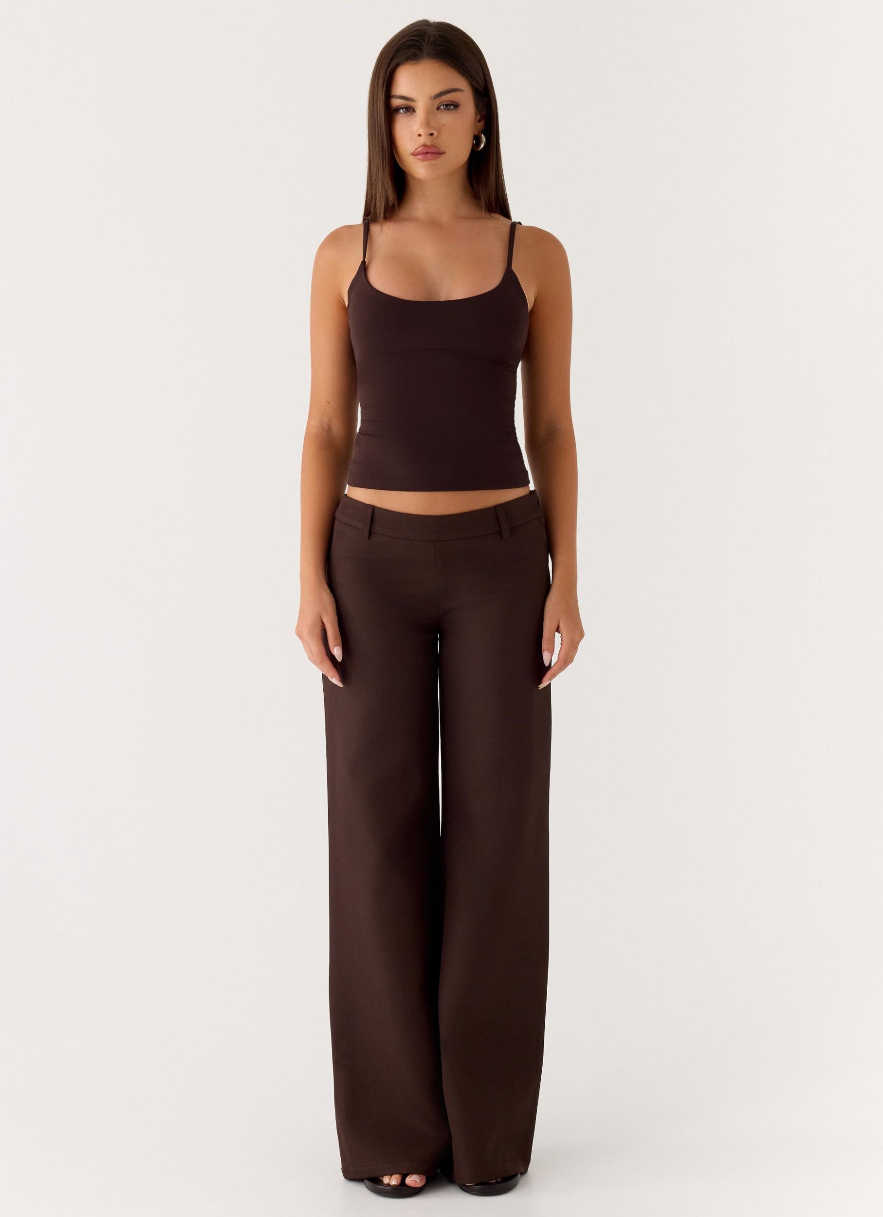 Peppermayo Exclusive The Hot as Ice Low Rise Pants are made for sleek, confident evenings. Cut in a low rise, slim fit silhouette, they elongate the leg while maintaining a polished edge. Crafted in stretch suiting fabric, they move with ease and are fully lined for comfort from day to night. - Low rise- Slim fit- Side invisible zipper- Belt loops around waist- Fully lined- Fabric: 95% Polyester, 5% Elastane Size AU 8 / US 4 garment measurements:Waist: 78 cm / 30.71 inHip: 96 cm / 37.80 inLength: 107 cm / 42.13 in Olivia is 170cm and wears a size AU 6 / and US 2