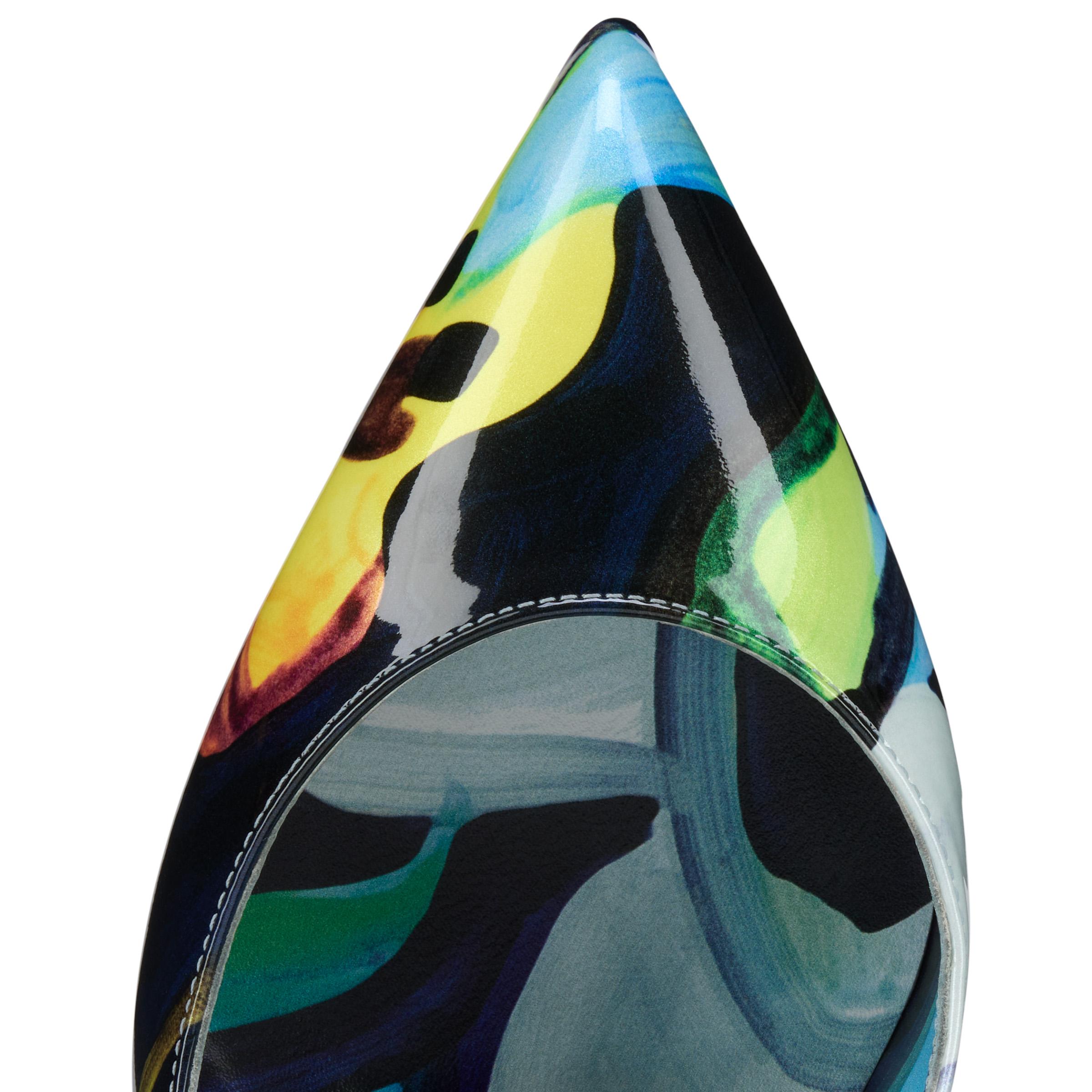 The Hot Chick pump is an iconic Maison Christian Louboutin design with a low-cut vamp, a pointed toe and V-shaped notches under the ankle. It is set on a 100 mm stiletto heel and showcases delicate finishing details. This sophisticated pump is crafted from pearlescent patent multicoloured Flower print calf leather.