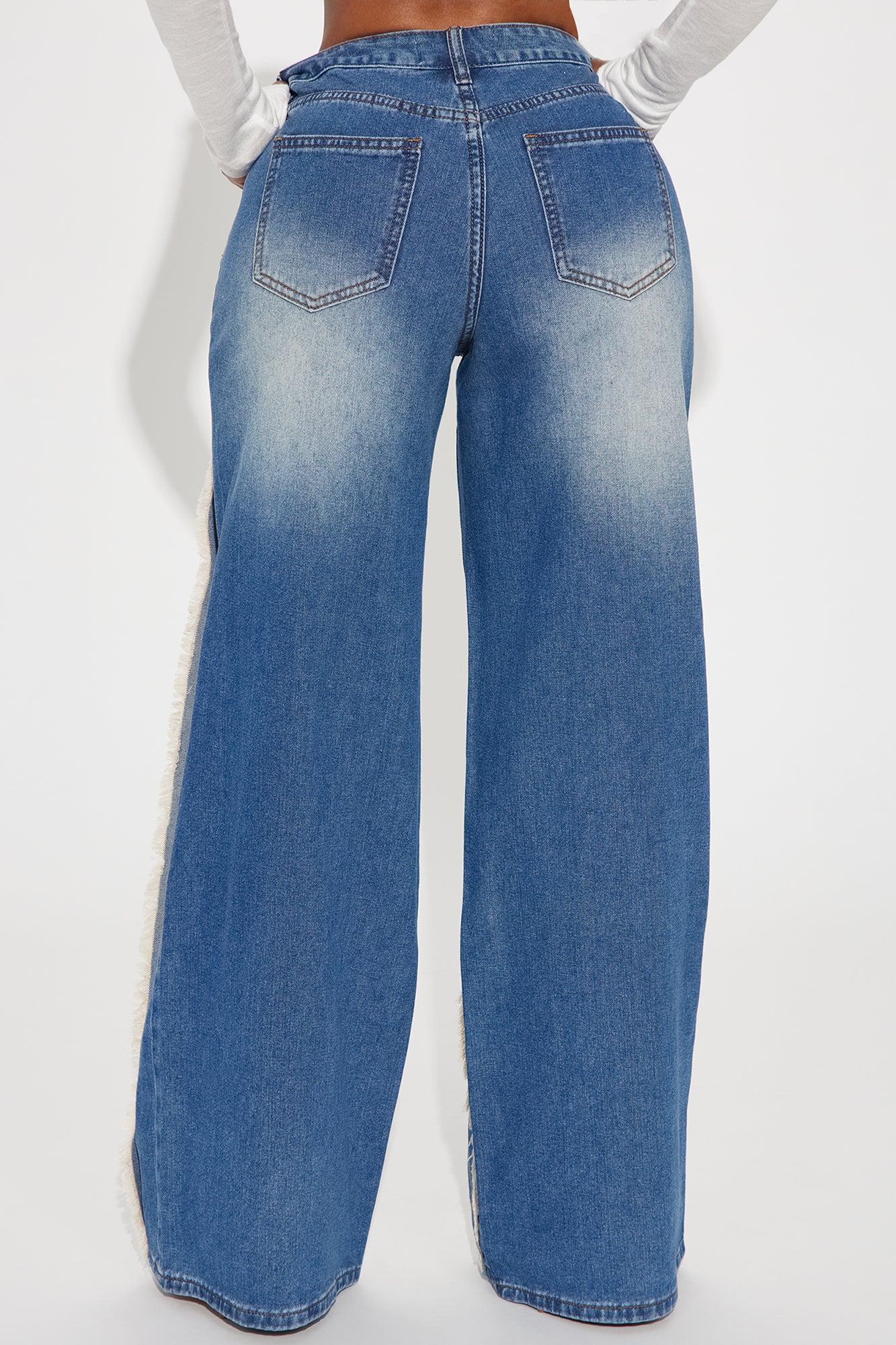Hot Takes Fray Seam Baggy Jeans - Medium Wash