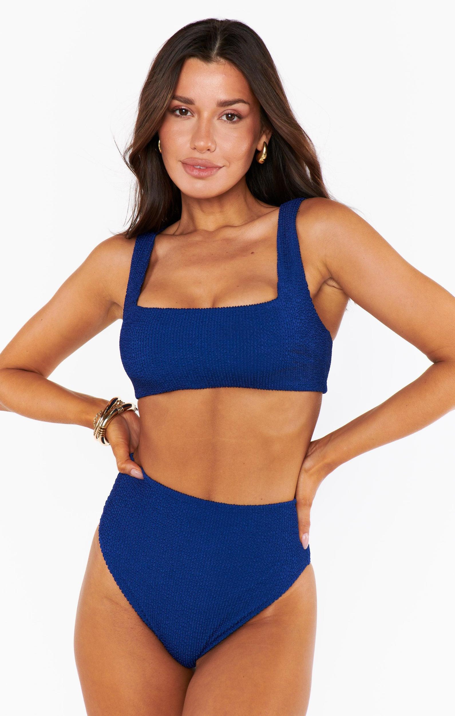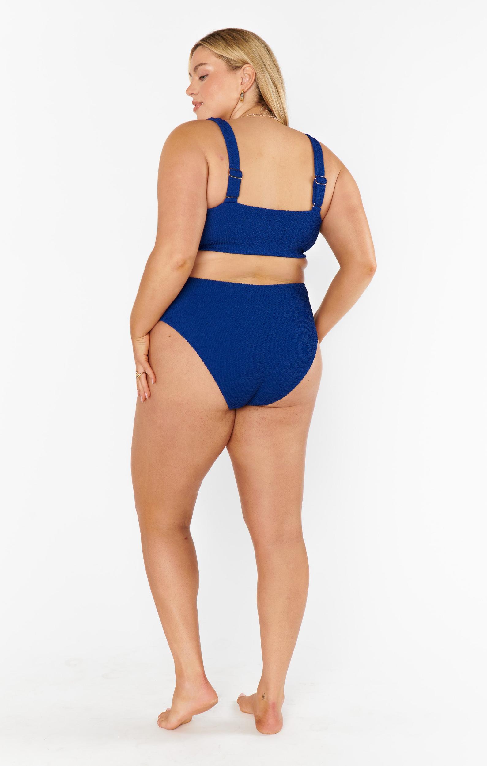Sit poolside and soak up the rays! With a classic scoop neck cut, adjustable straps, and scrunch fabric, this top will fit like a dream and stay put all day long. Perfectly pairs with the Sail Bottom in Navy Scrunch.