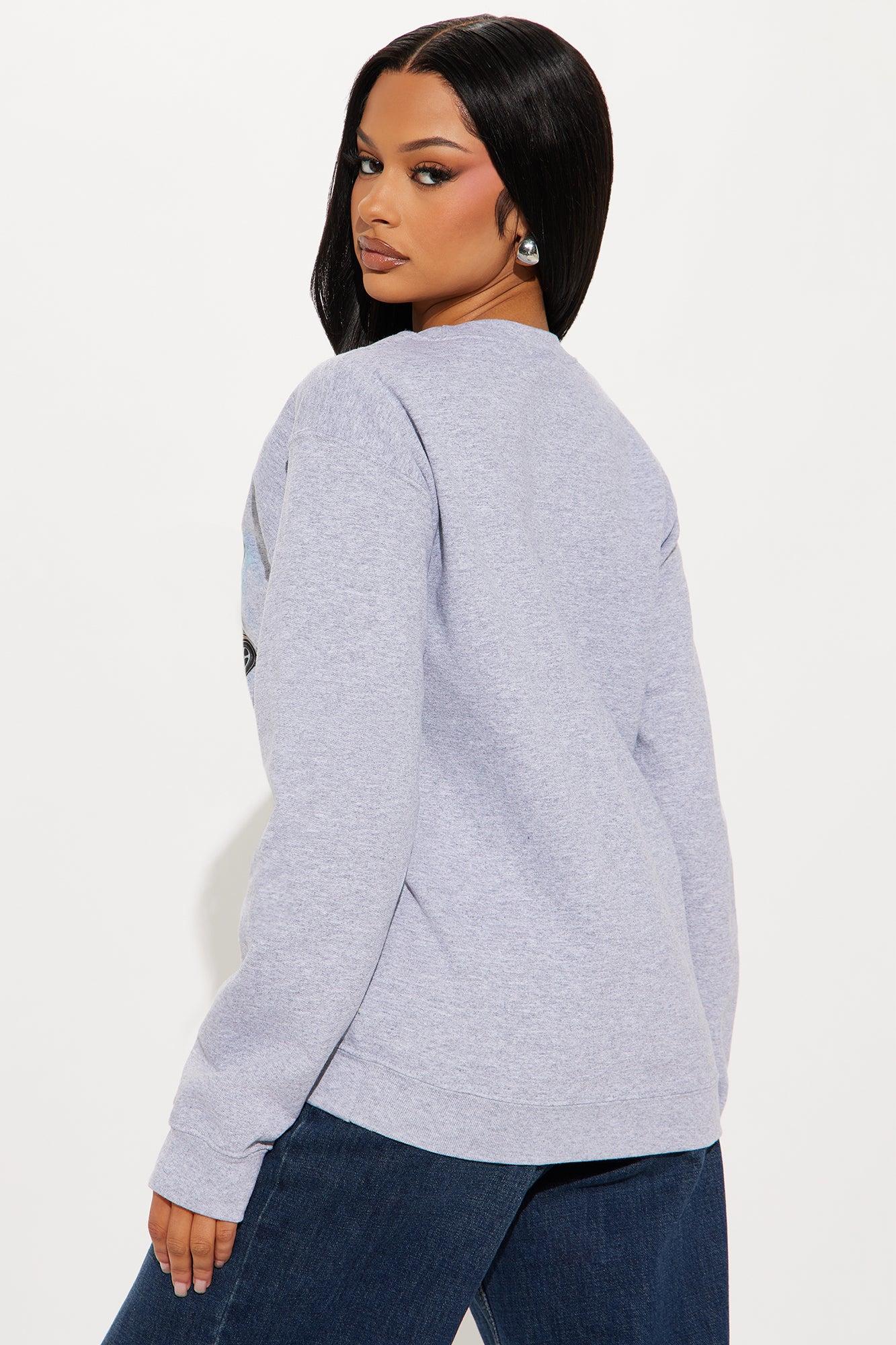 Available In Heather Grey. Crew Neck Long Sleeve Front Screen Stretch Disclaimer: Due To The Printing Process A Difference In Saturation May Occur. Each Garment Is Unique. 50% Cotton 50% Polyester Imported