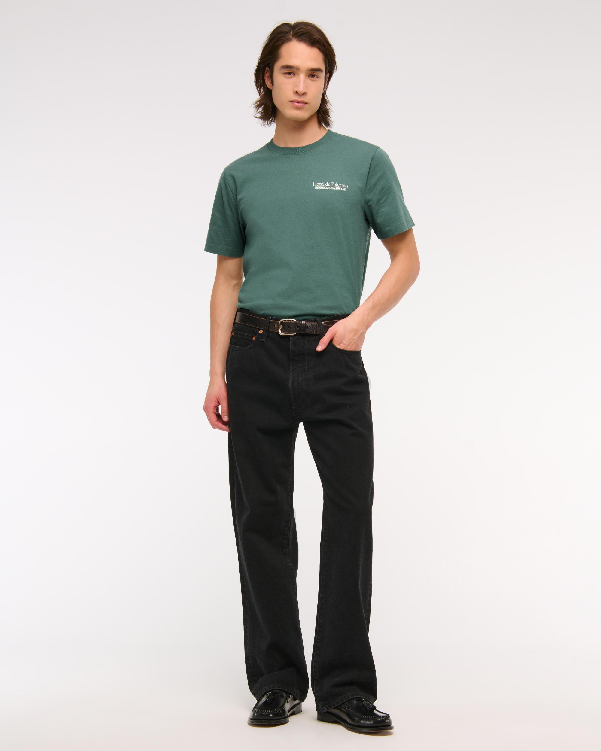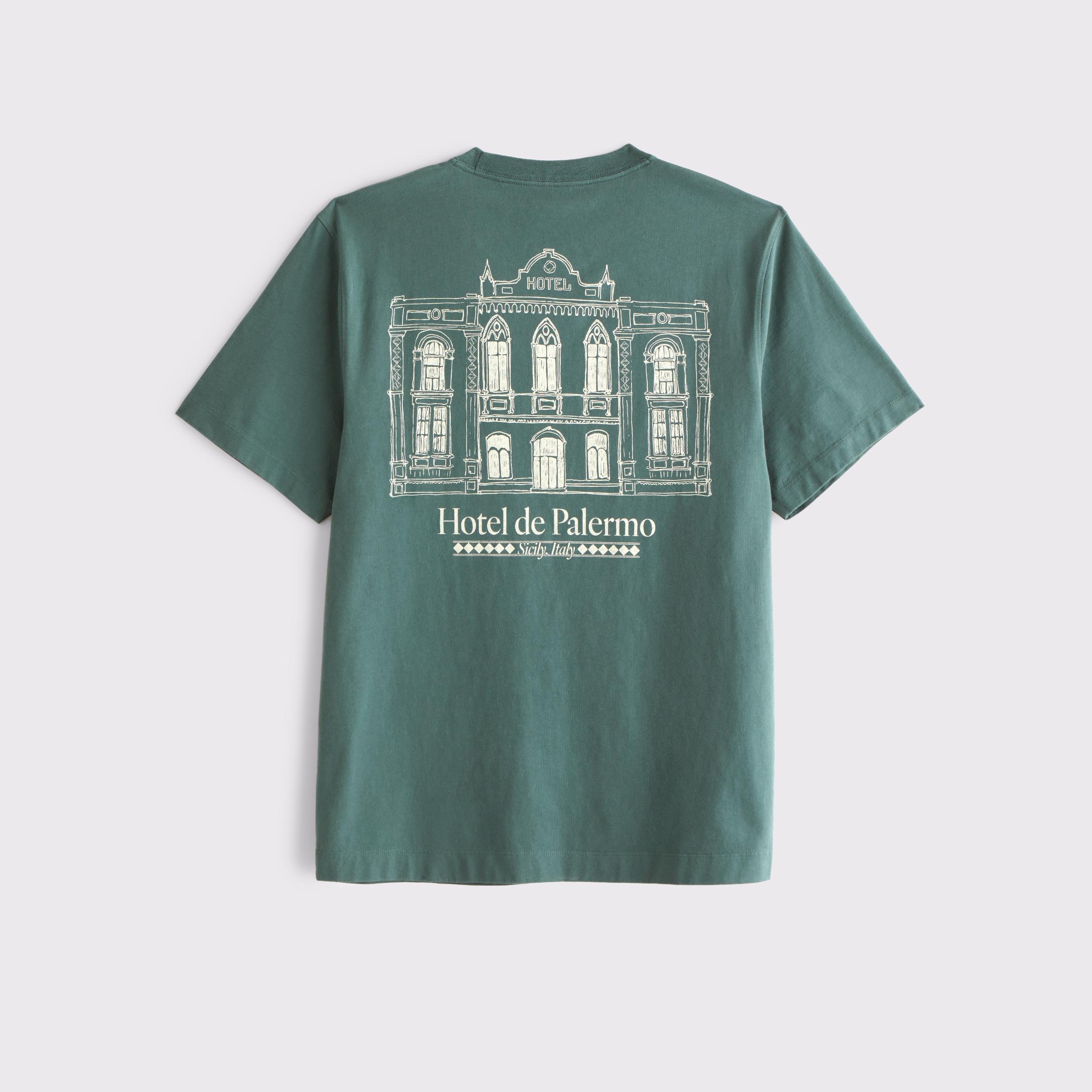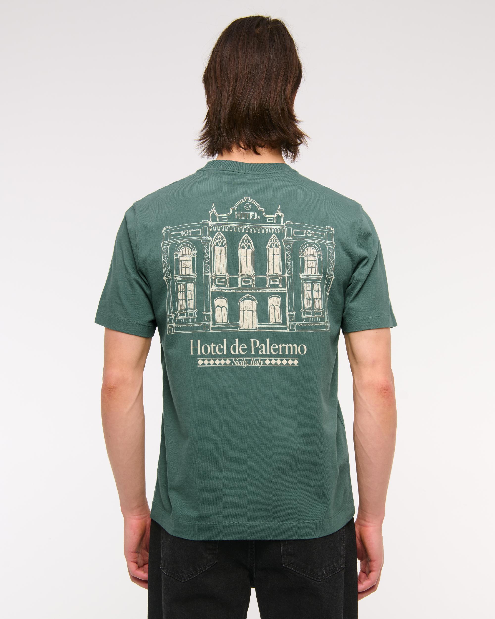 Our new short-sleeve tee in our softAF 212g fabric and new tailored back classic fit, with a biopolish finish, that creates a clean and crisp feel to the touch. Features hotel-inspired graphic detail at left chest and back, crew neckline and straight hem.