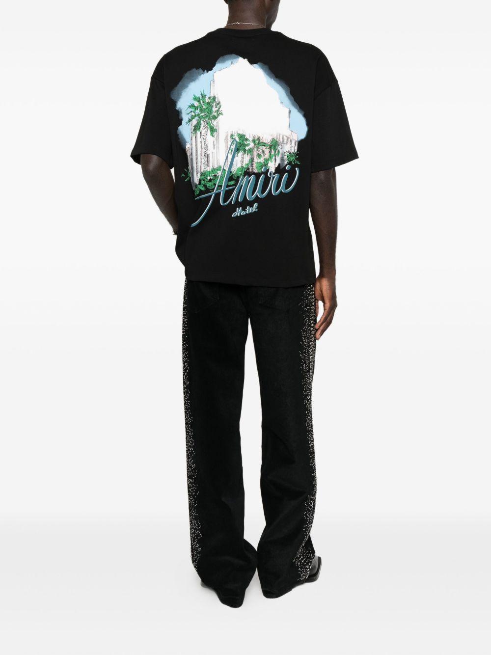 AMIRI Hotel graphic-print T-shirt | Black | black | short sleeves | crew neck | graphic print | hotel illustration | Fabric | T-Shirts | T-Shirts & Vests | Clothing | Men