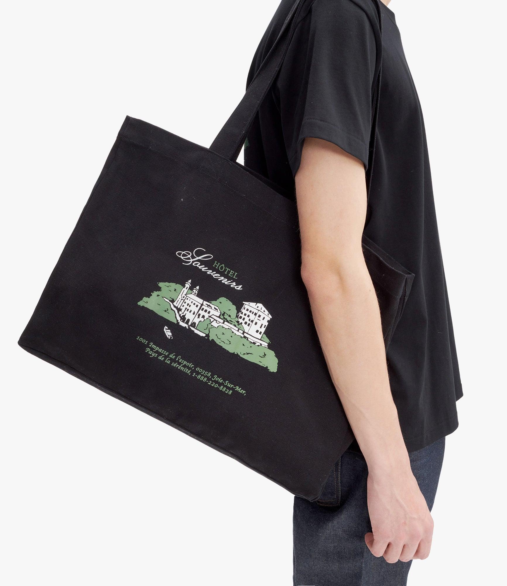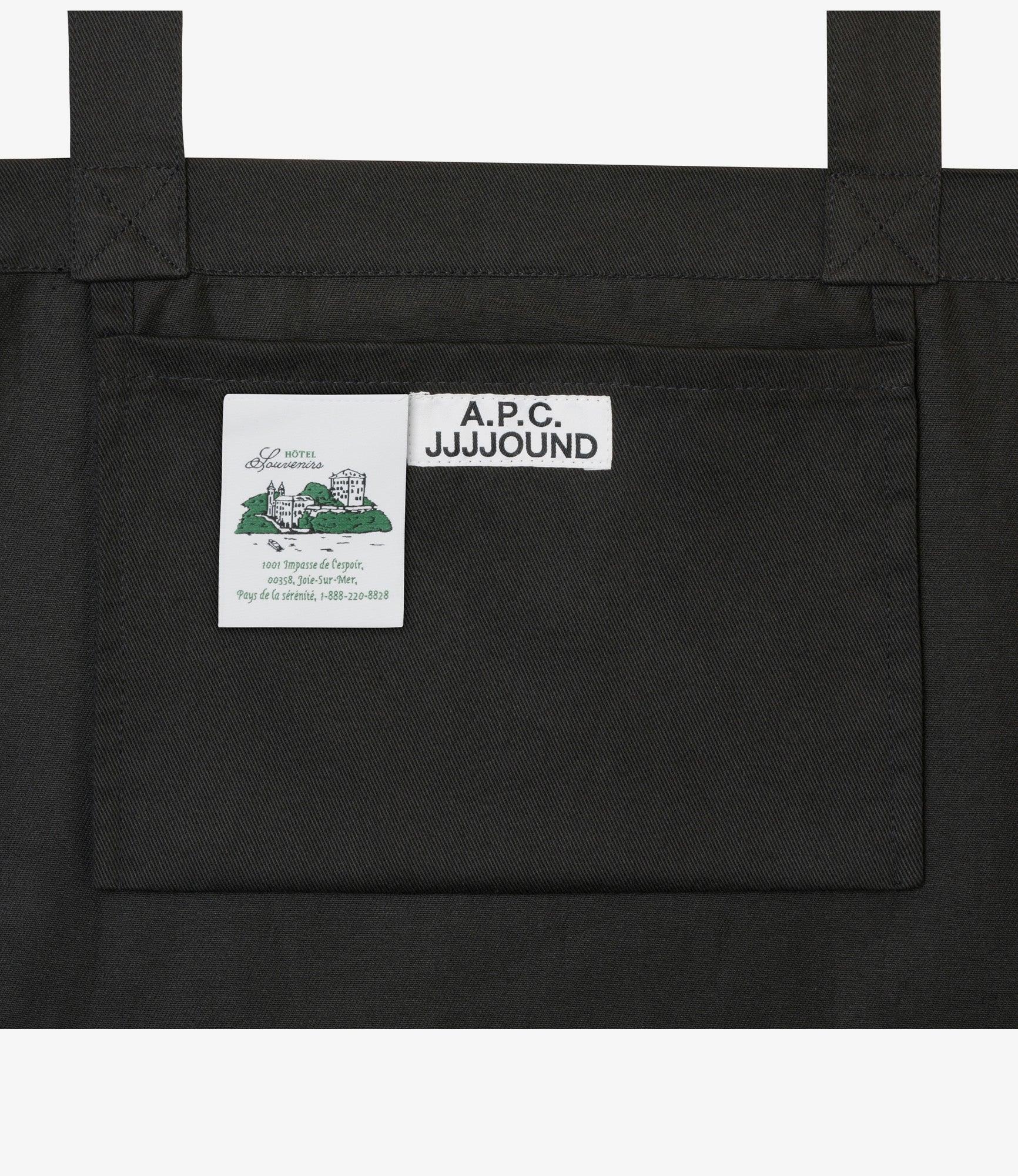 A.P.C. x JJJJound tote bag.- Unisex model. - Two large handles to carry the bag by hand or on the shoulder. - One inside pocket. - "Hôtel Souvenirs" screenprint on one side and A.P.C. on the other. - A.P.C. JJJJound label on the side. - 100% organic cotton.