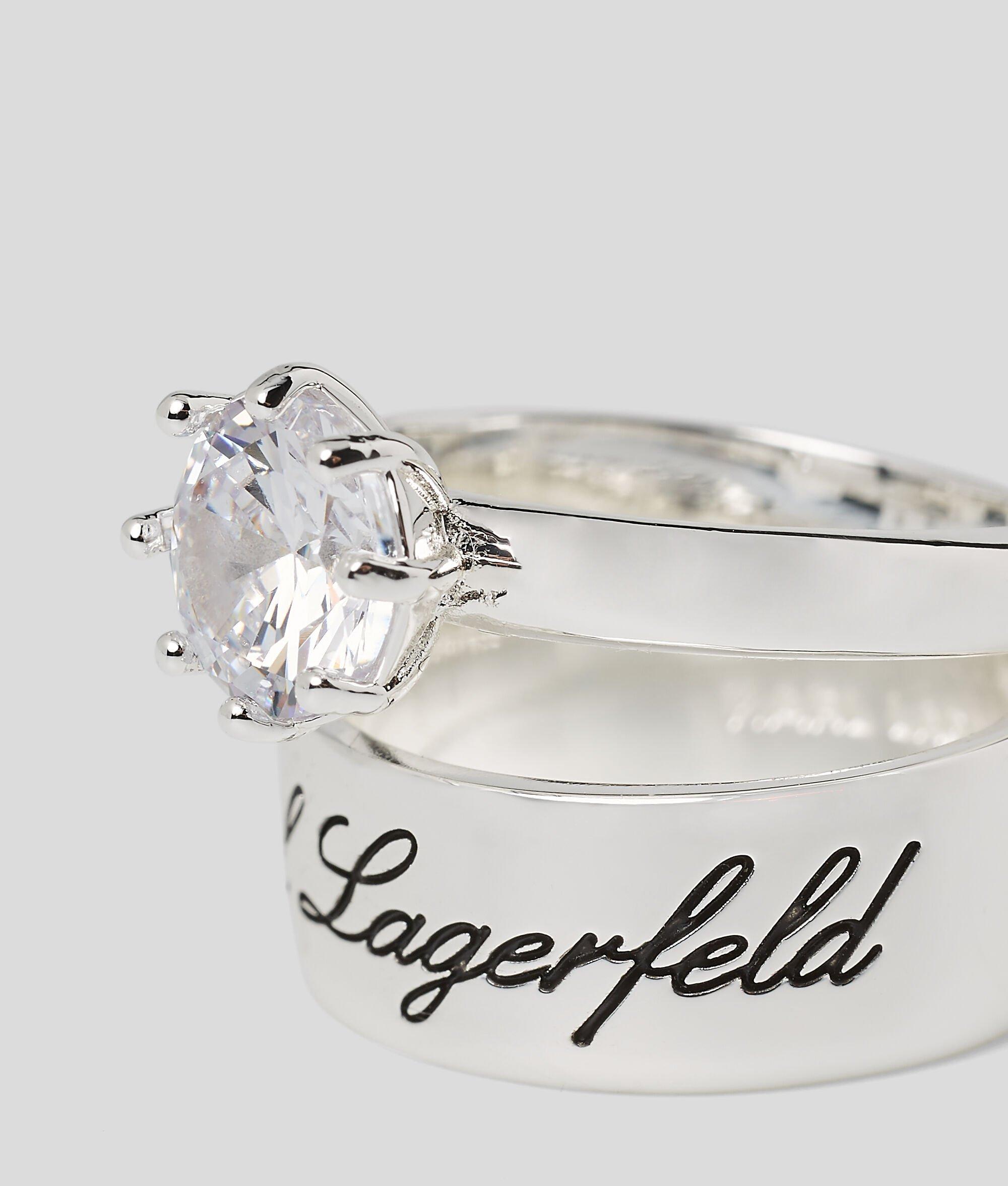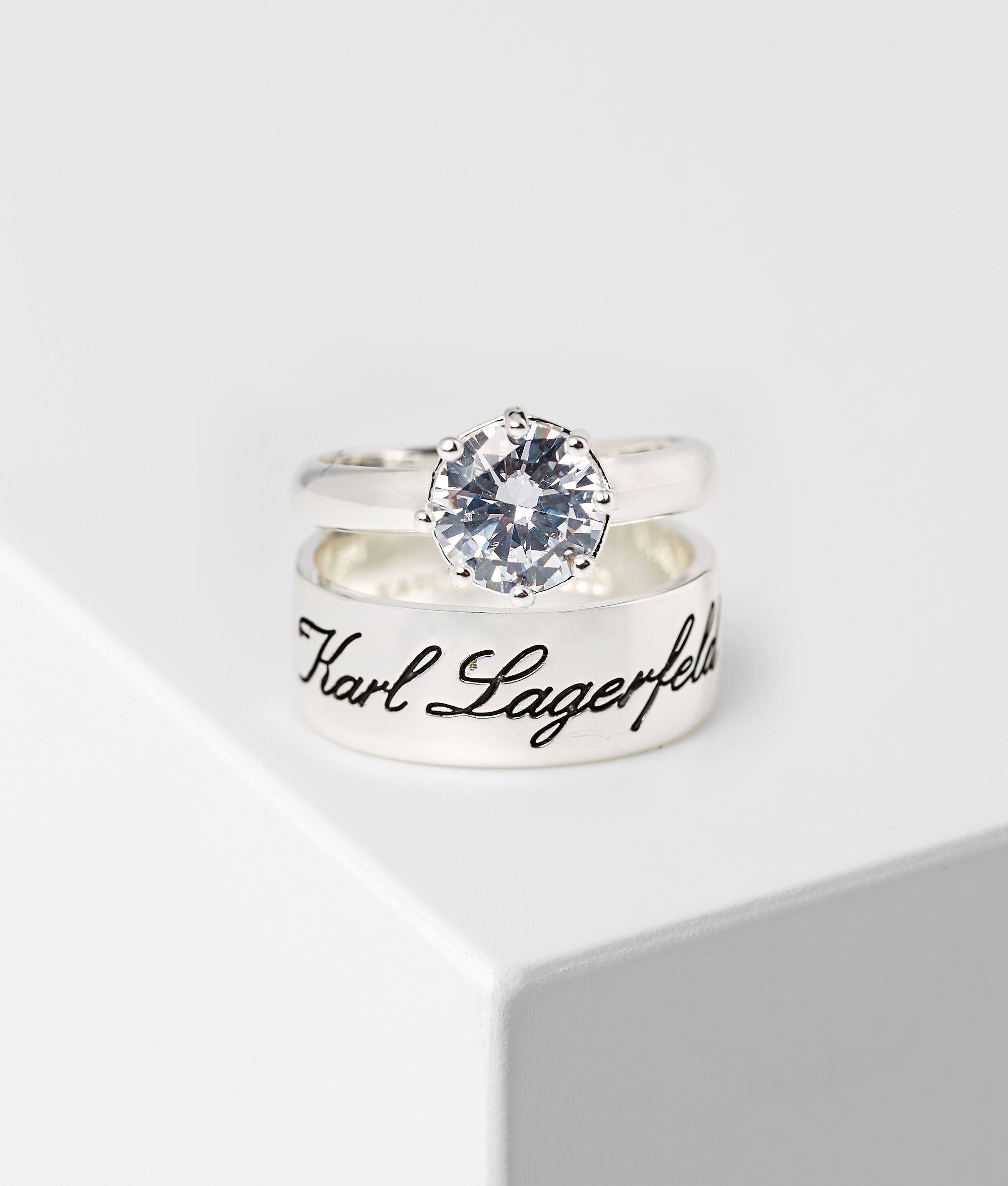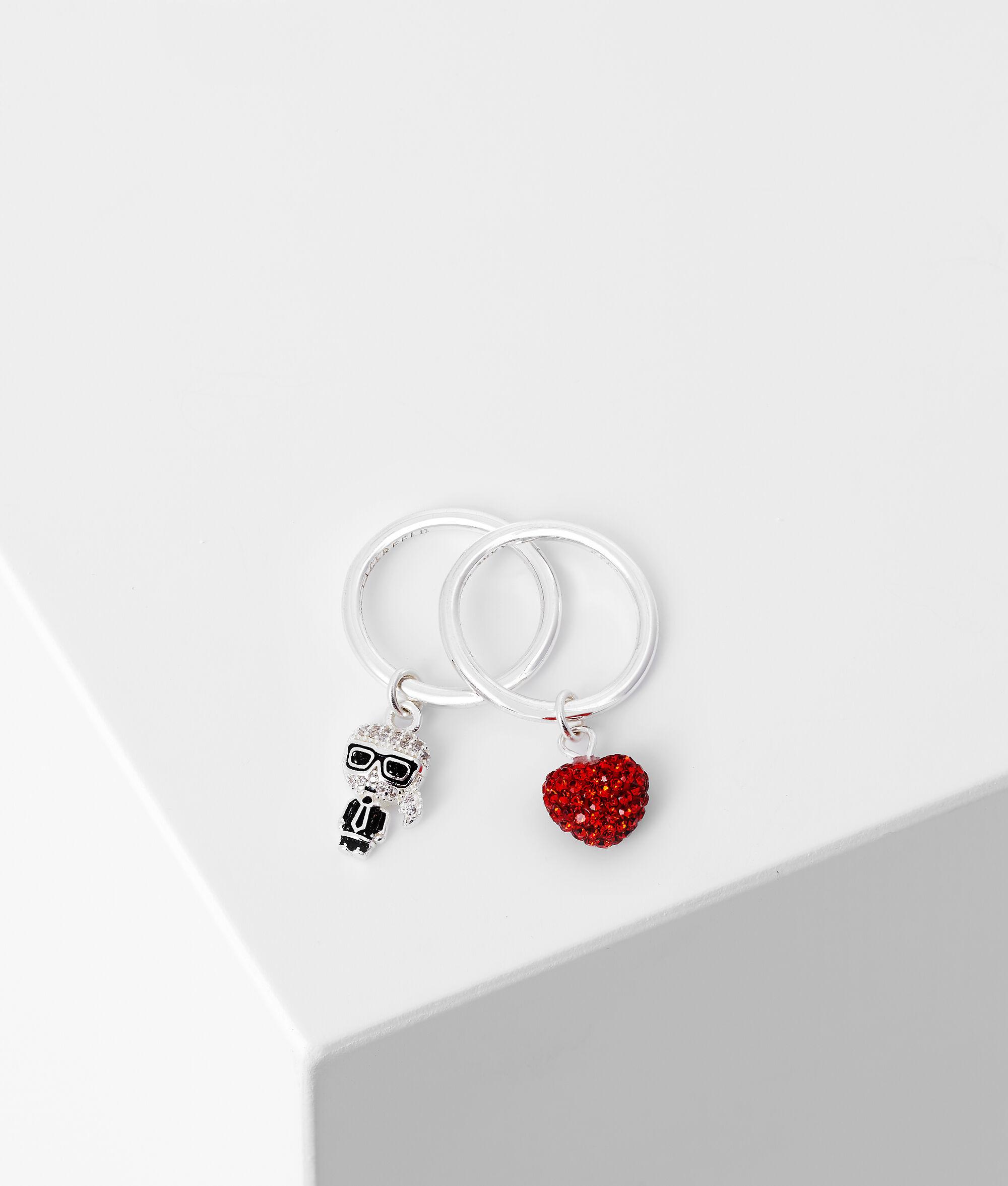 Bringing added sparkle to layered jewelry looks, these stackable sterling silver rings feature playful IKON Karl and heart-shaped charms embellished with all-over micro-pave stones.