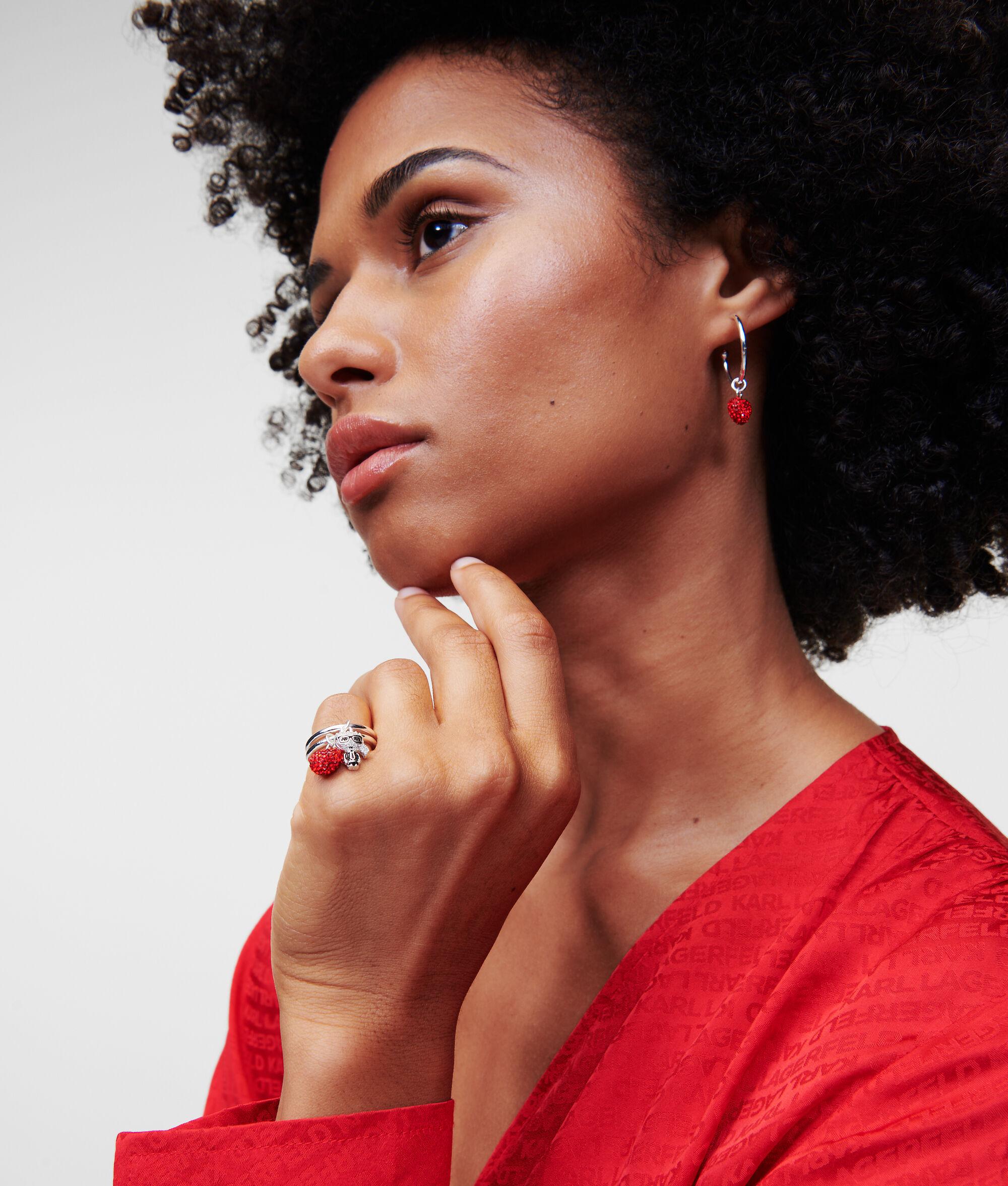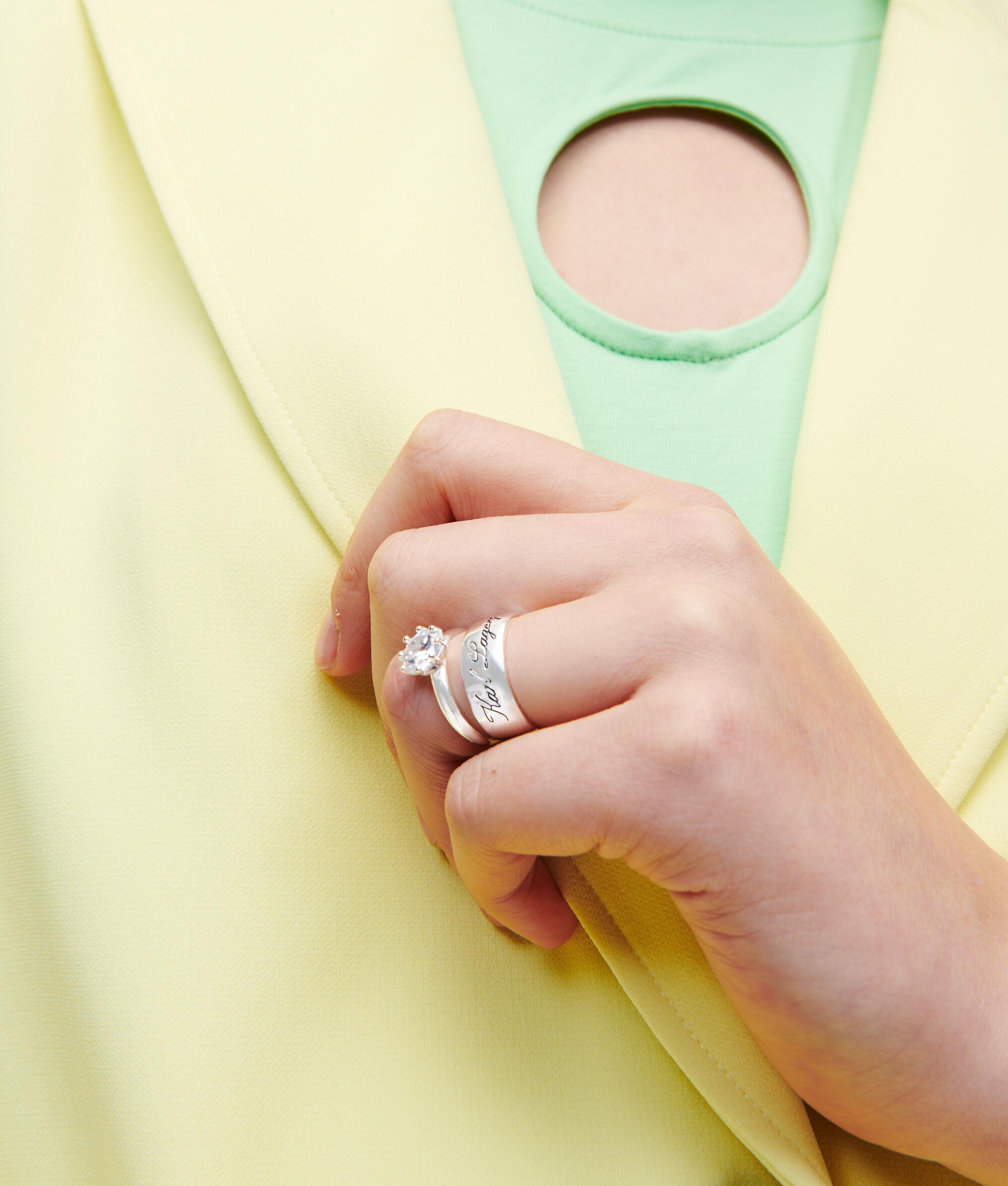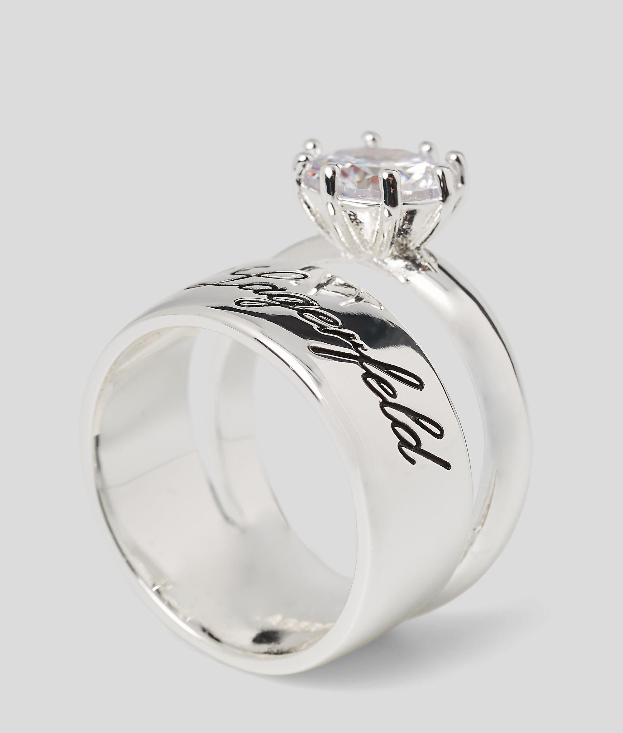 Bringing added sparkle to layered jewelry looks, these stackable sterling silver rings feature playful IKON Karl and heart-shaped charms embellished with all-over micro-pave stones.
