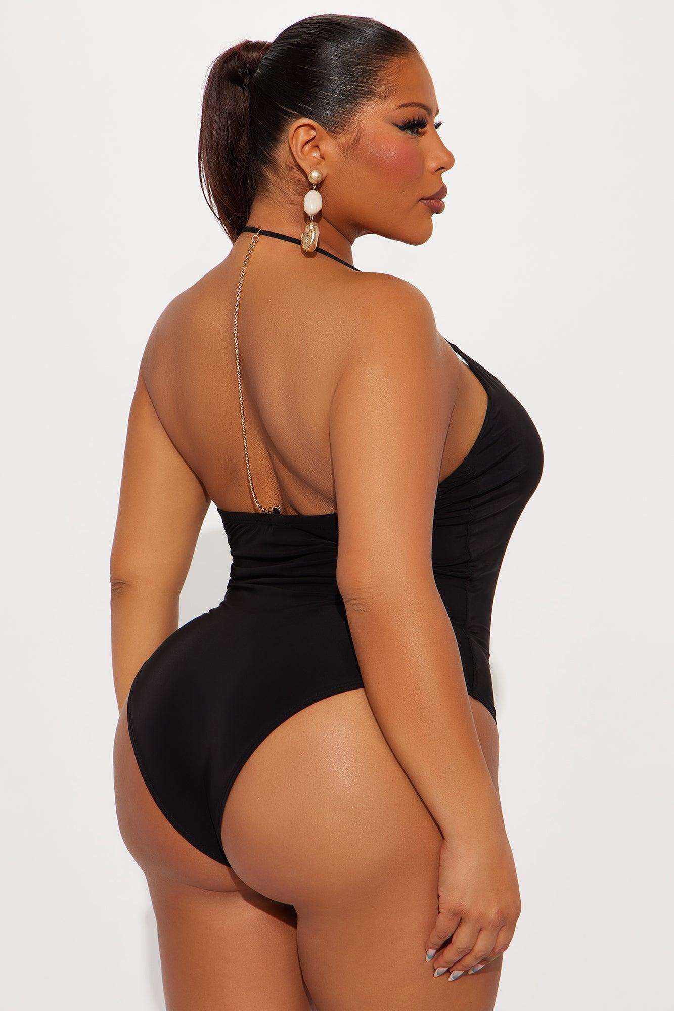 Available In Black. Halter Bodysuit Stretch Scoop Neck Backless Chain Strap Detail Double Lined Cheeky Bottom Snap Closure Final Sale Self: 95% Polyester 5% Spandex Imported California Proposition 65WARNING: Cancer and Reproductive Harm - www.P65Warnings.ca.gov.