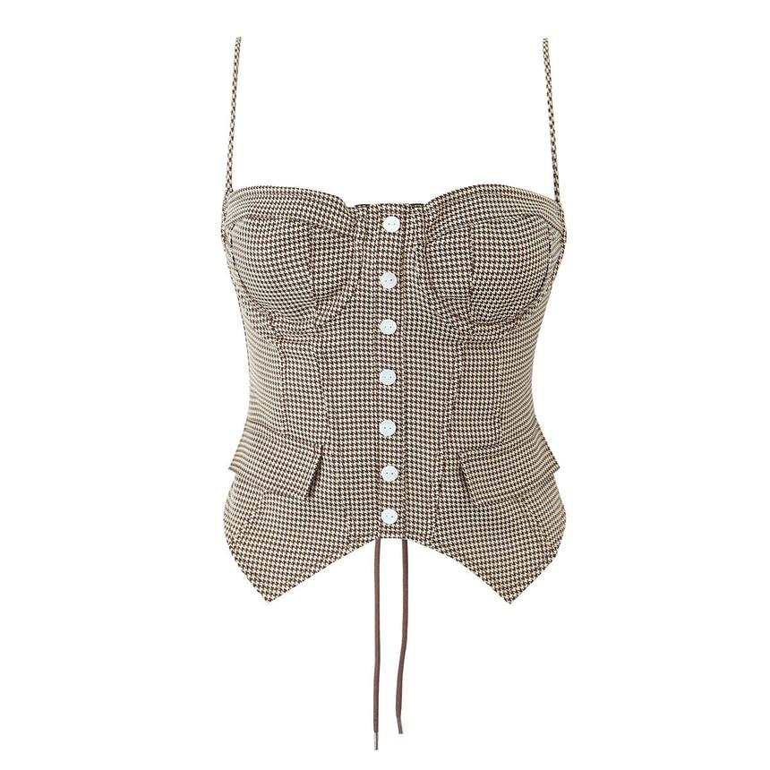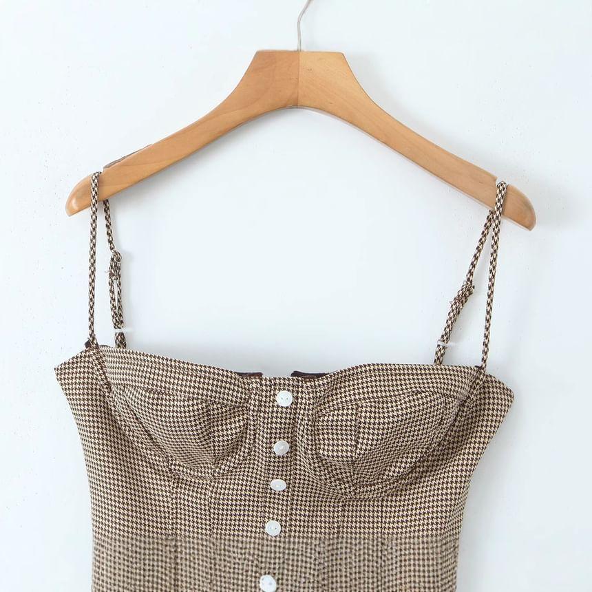 Buy Sensarra Houndstooth Asymmetrical Button Bustier Top at YesStyle.com! Quality products at remarkable prices. FREE Worldwide Shipping available!