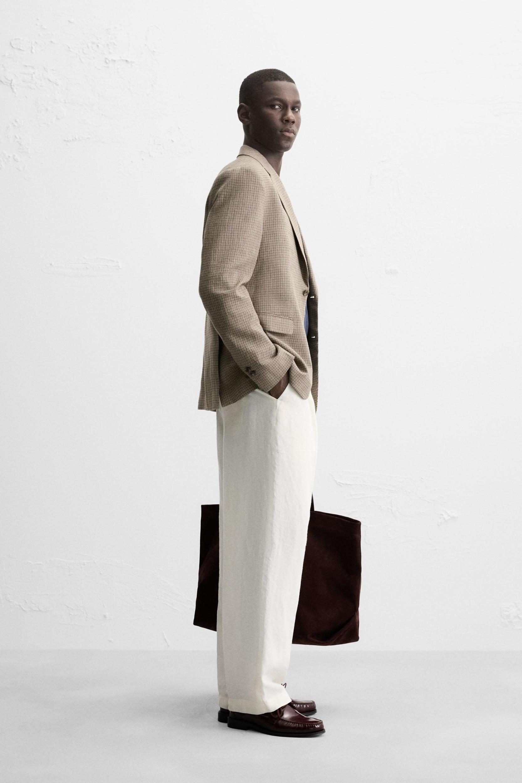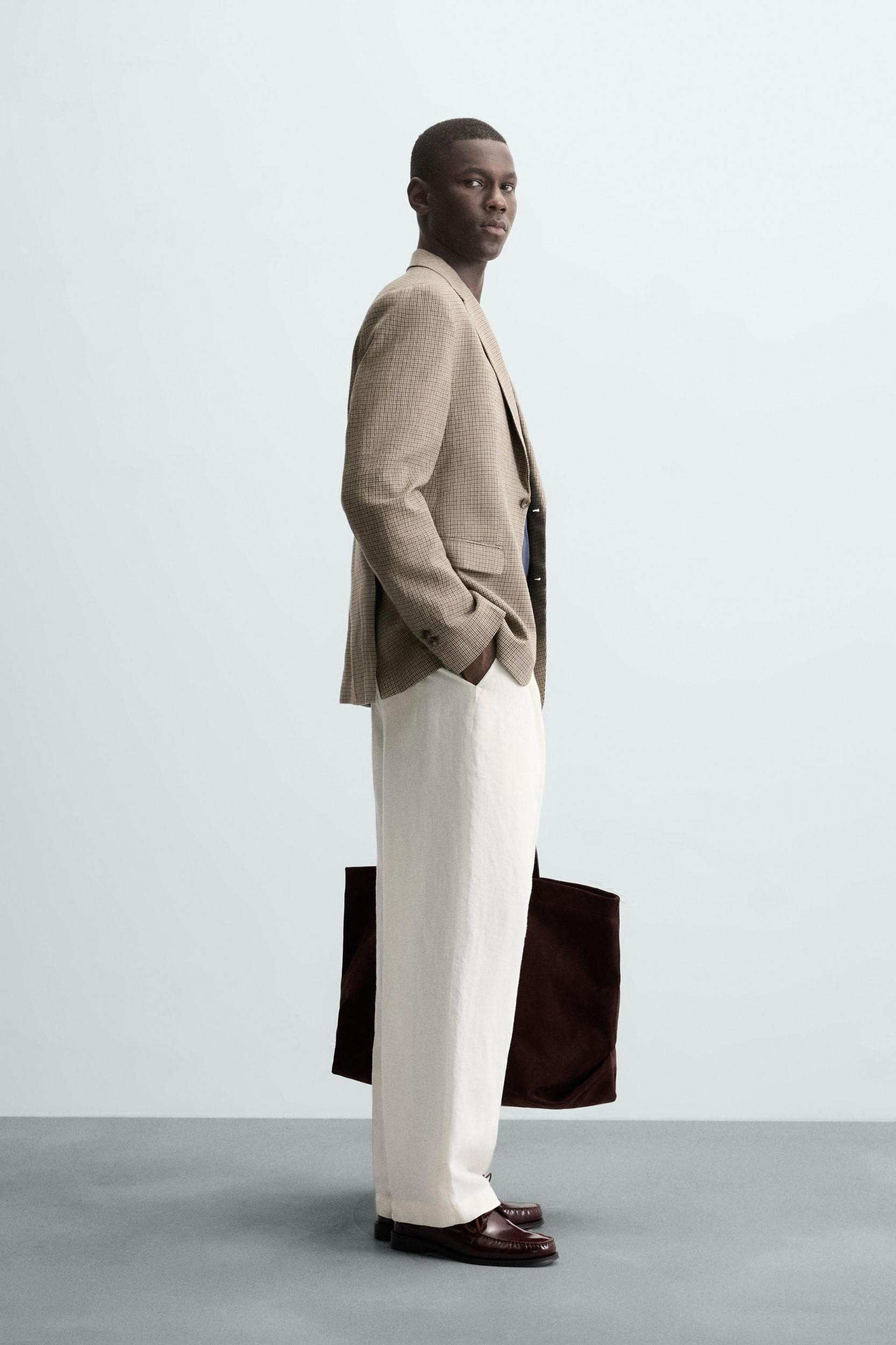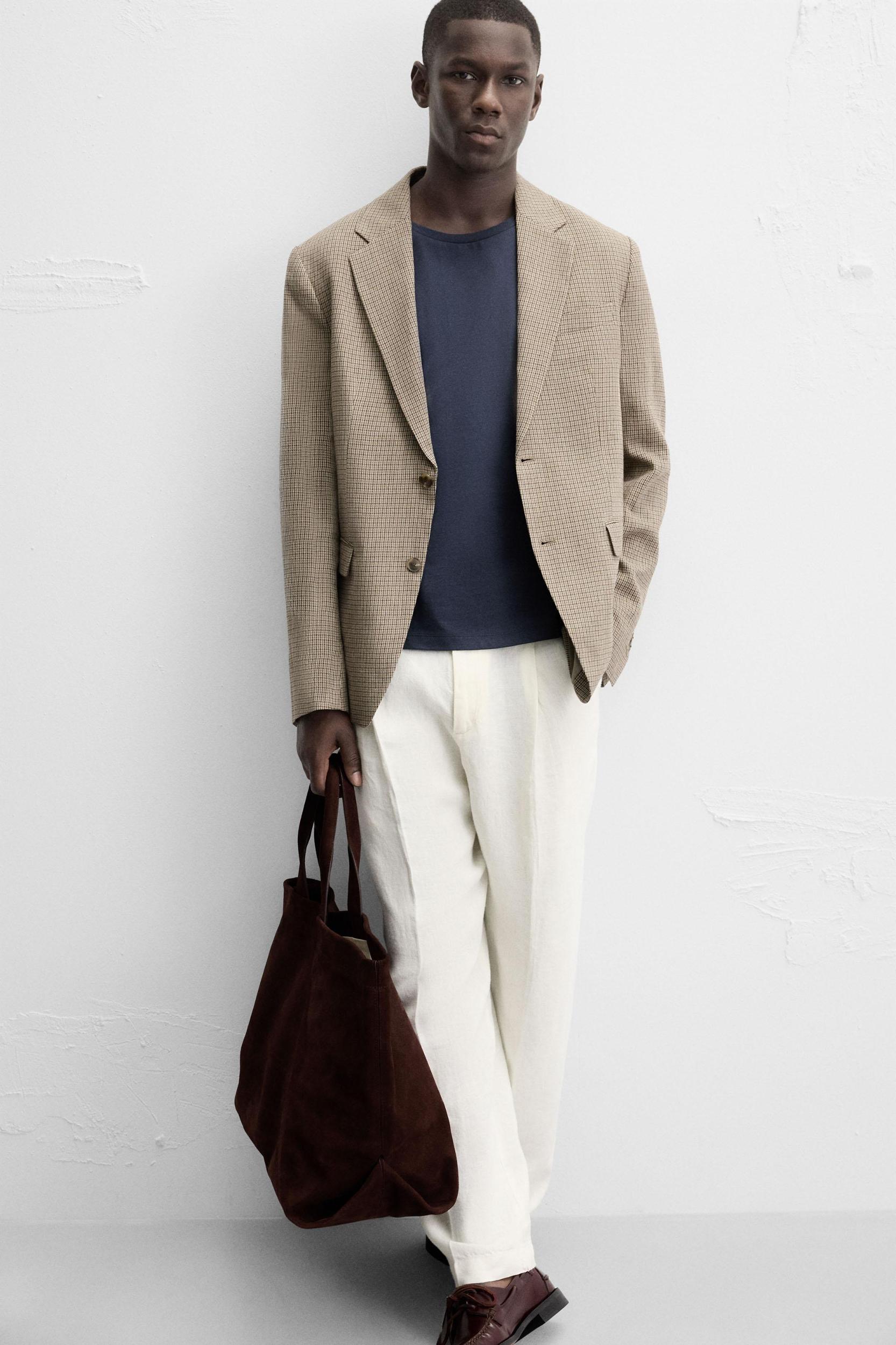Regular fit blazer made in a fabric with cotton, viscose and 15% linen. Notched lapel collar and long sleeves finished in buttoned cuffs. Welt pocket at chest and flap pocket at hip. Interior pocket detail. Hem with vents at back. Front button closure.