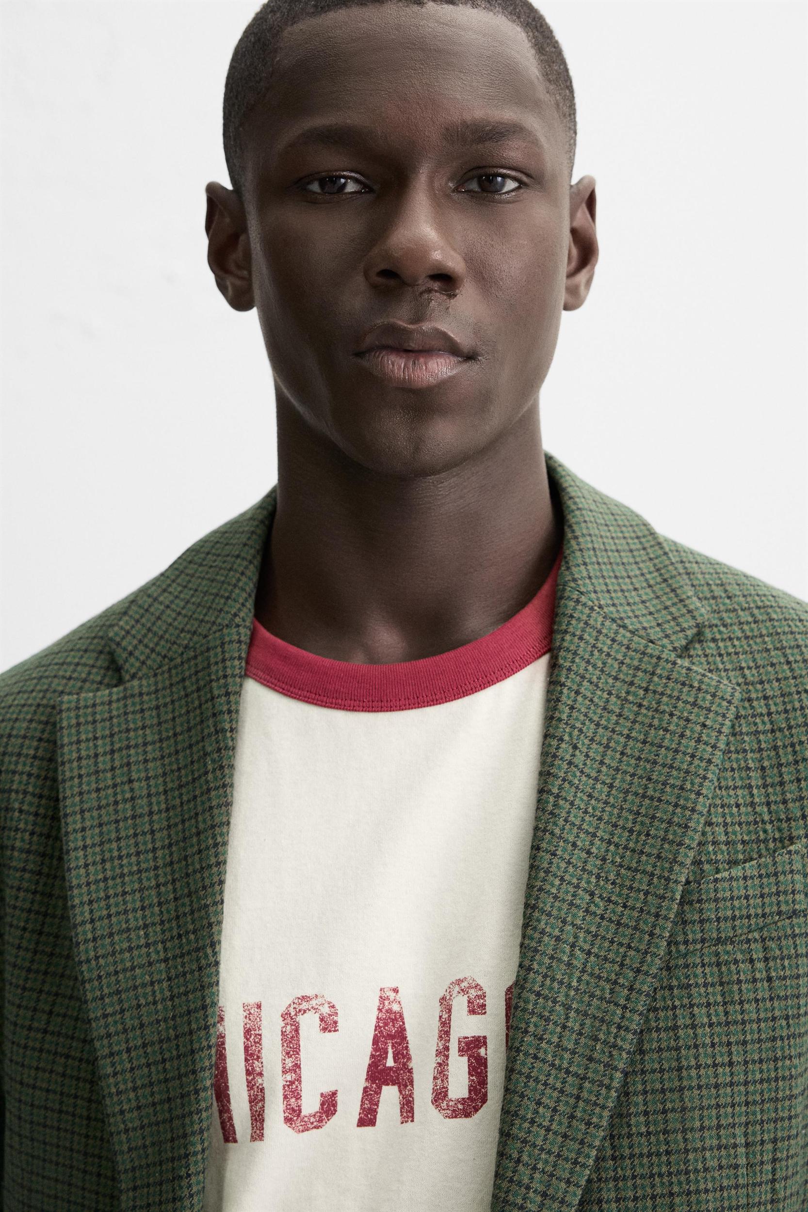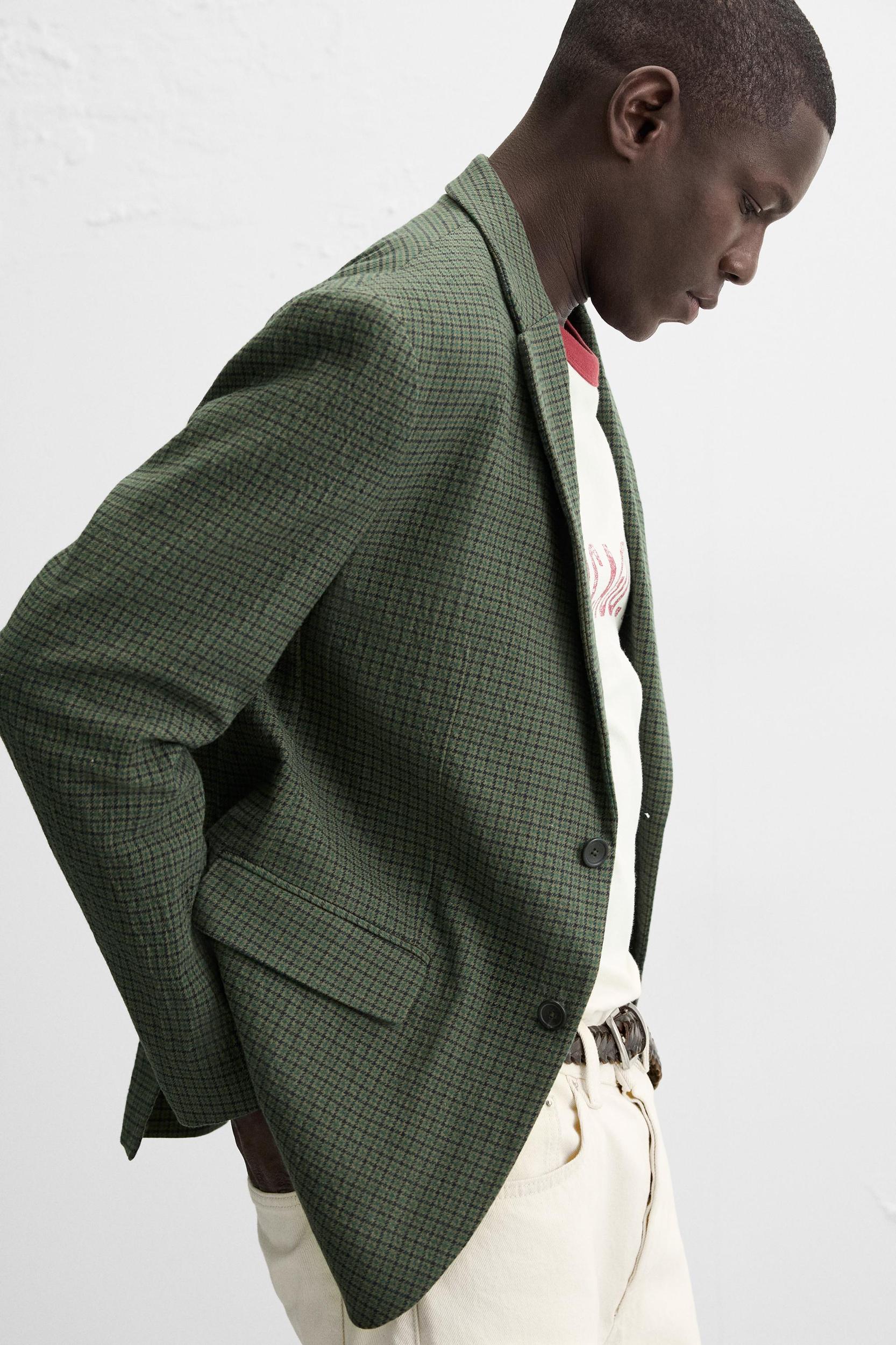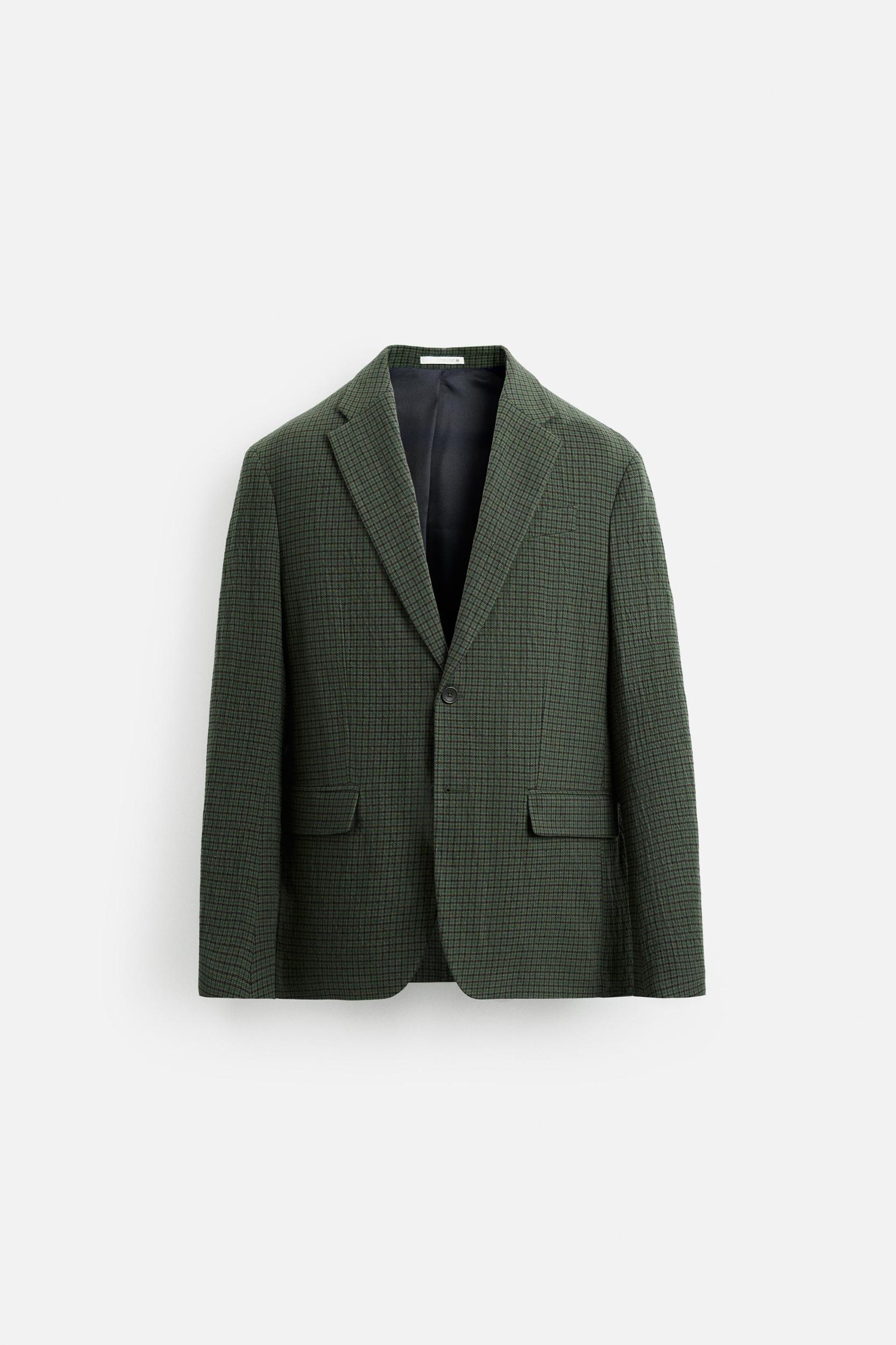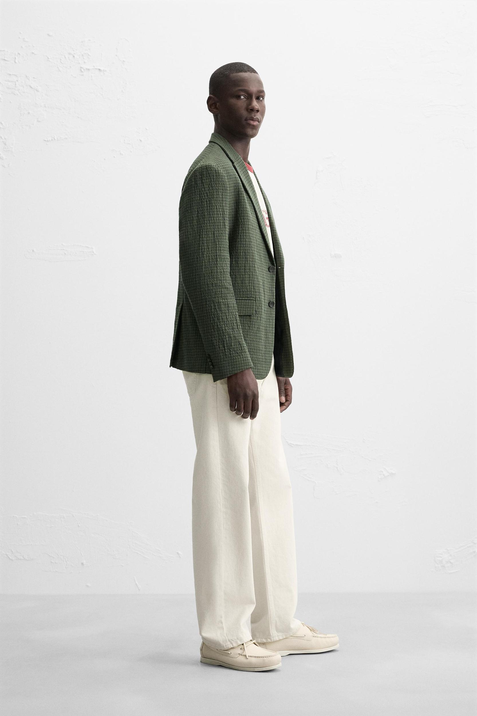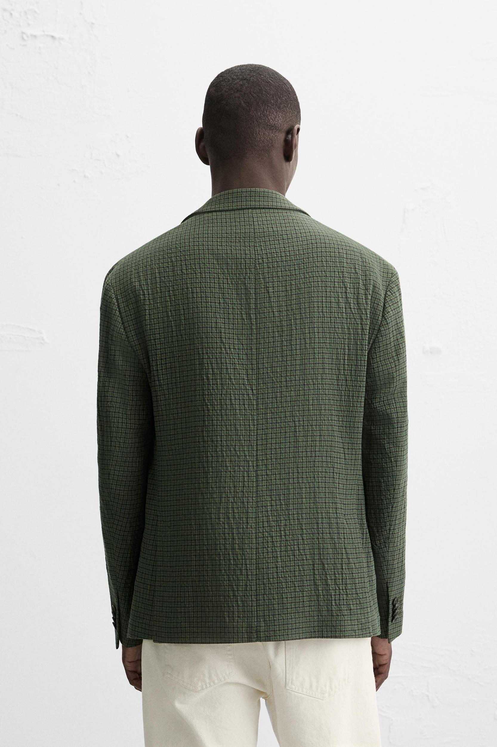 Regular fit blazer made of cotton blend fabric with a crinkled effect. Notched lapel collar and long sleeves with buttoned cuffs. Welt pocket at chest and flap pocket at hip. Interior pocket detail. Hem with vents at back. Front button closure.