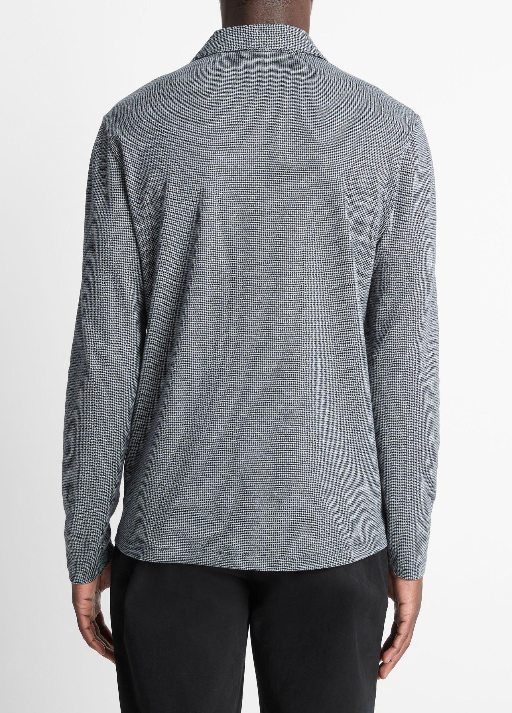 Houndstooth Cotton Johnny-Collar Polo Shirt