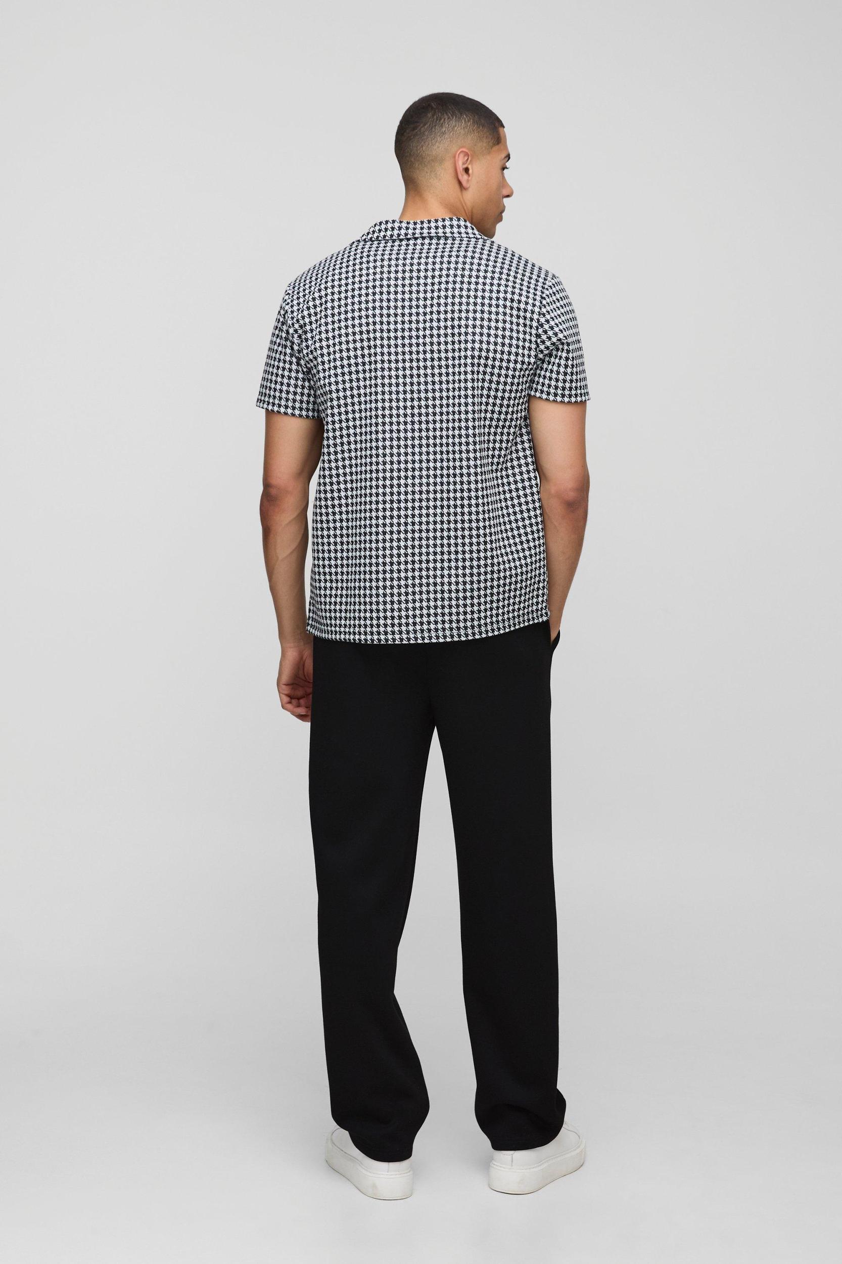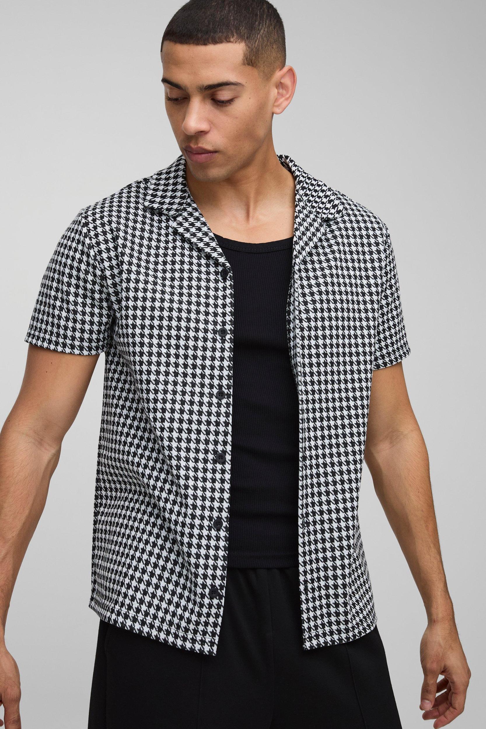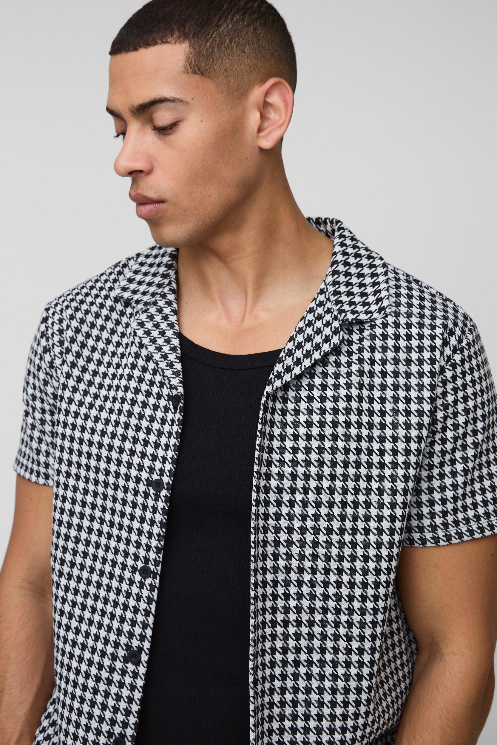 Houndstooth Regular Revere Short Sleeve Shirt | boohooMAN USA