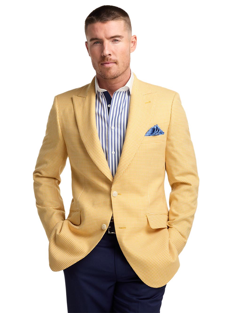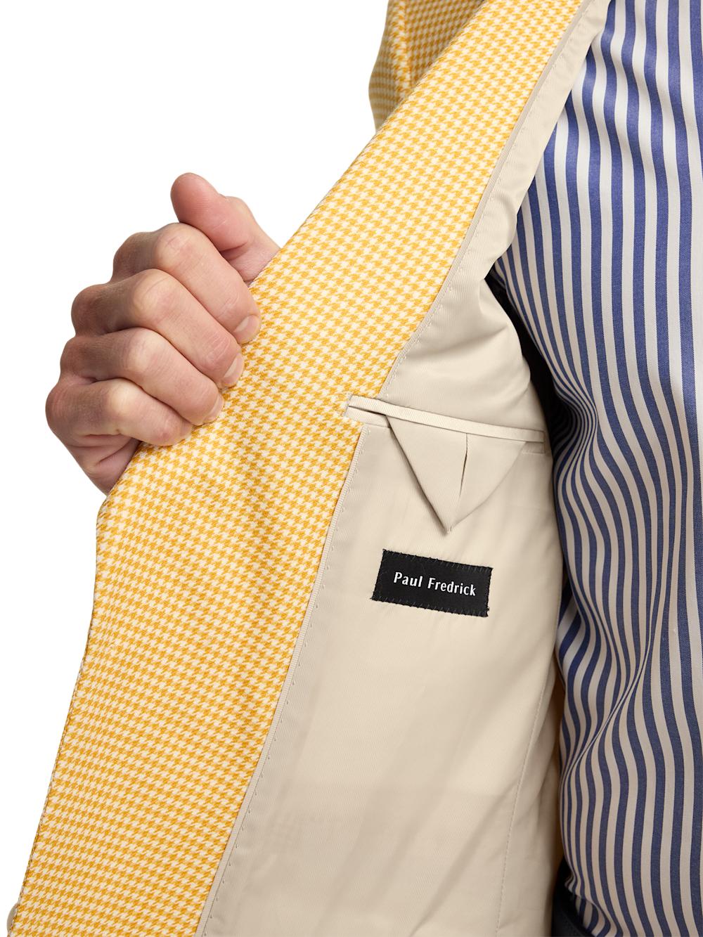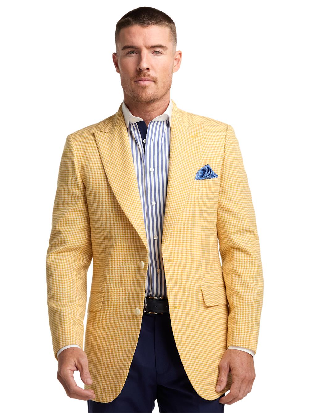 Houndstooth Wool Single Breasted Peak Lapel Sport Coat - Yellow