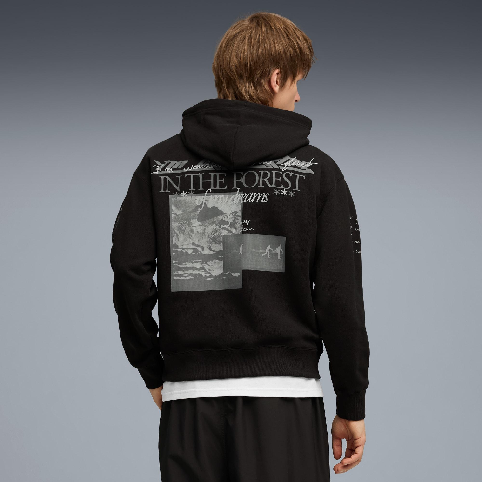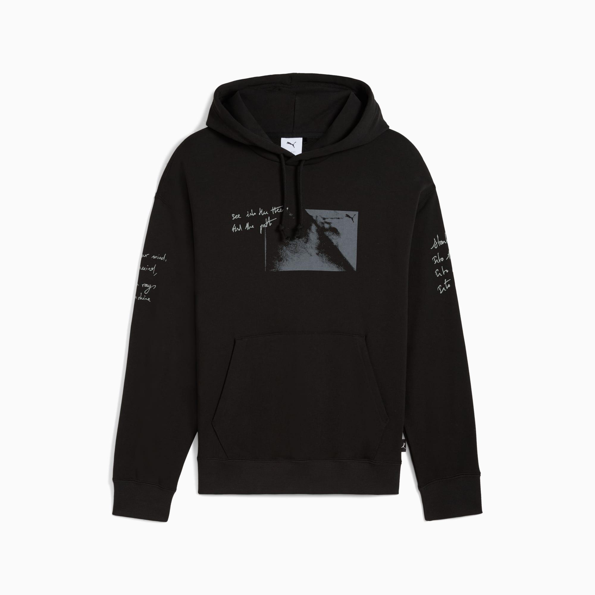 descriptionThe House of Graphics collection blends elements of music, art, and design to create something fresh. T-shirts and hoodies feature striking graphics that combine mediums, materials, and messages. This season, we draw inspiration from everything... and nothing.Style: 632482_01Color: PUMA Blackmeasure & sizeModel informationModel is 6' 1" tall and is wearing size M.features & benefitsMade with at least 20% recycled cotton.detailsFit: RelaxedMain material: French Terry, 365gsmHooded with drawcordsLong sleevesRibbed cuffs and hemLength: RegularPockets: Kangaroo PocketGraphic print detailsmaterials & careMaterial informationHood Lining: 100% cottonHood: 100% cottonShell: 100% cottonRib: 97% cotton, 3% elastaneCare instructionsWash and iron inside outDo not iron printUse only mild detergentExclusive of DecorationWash with similar colours