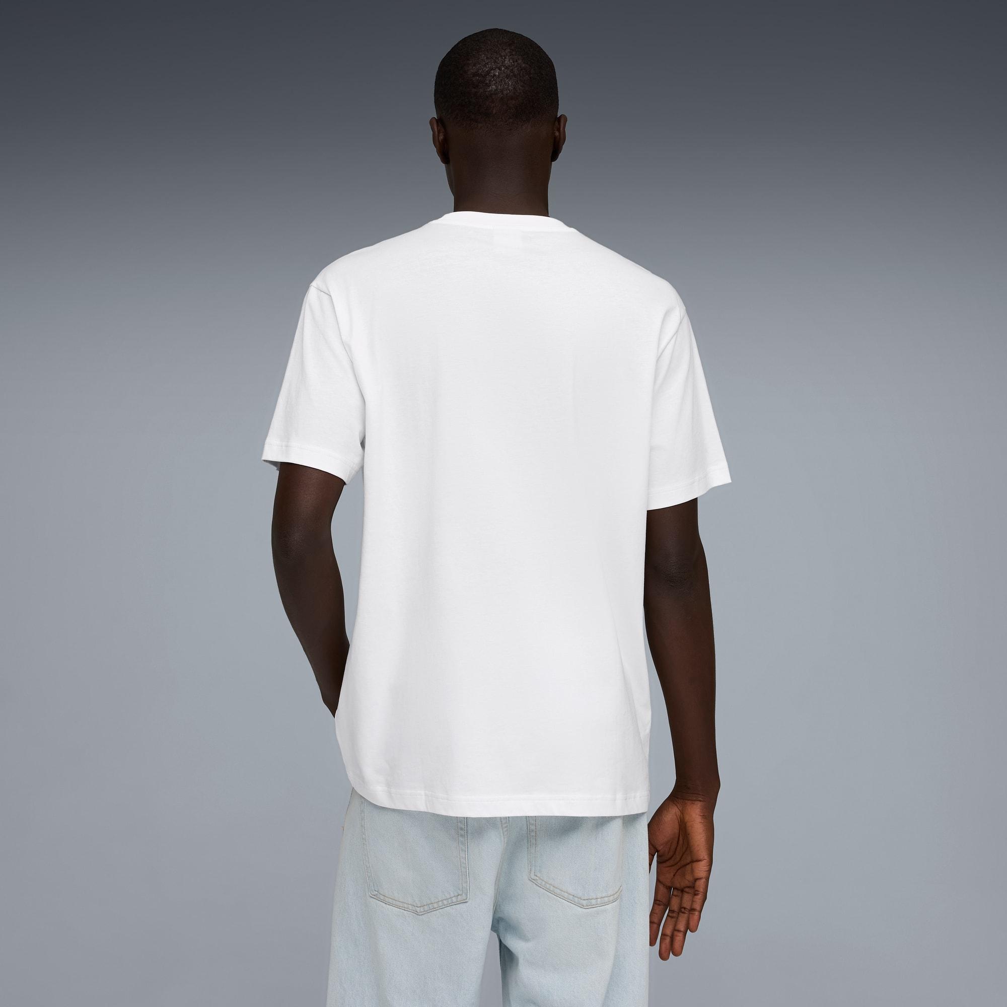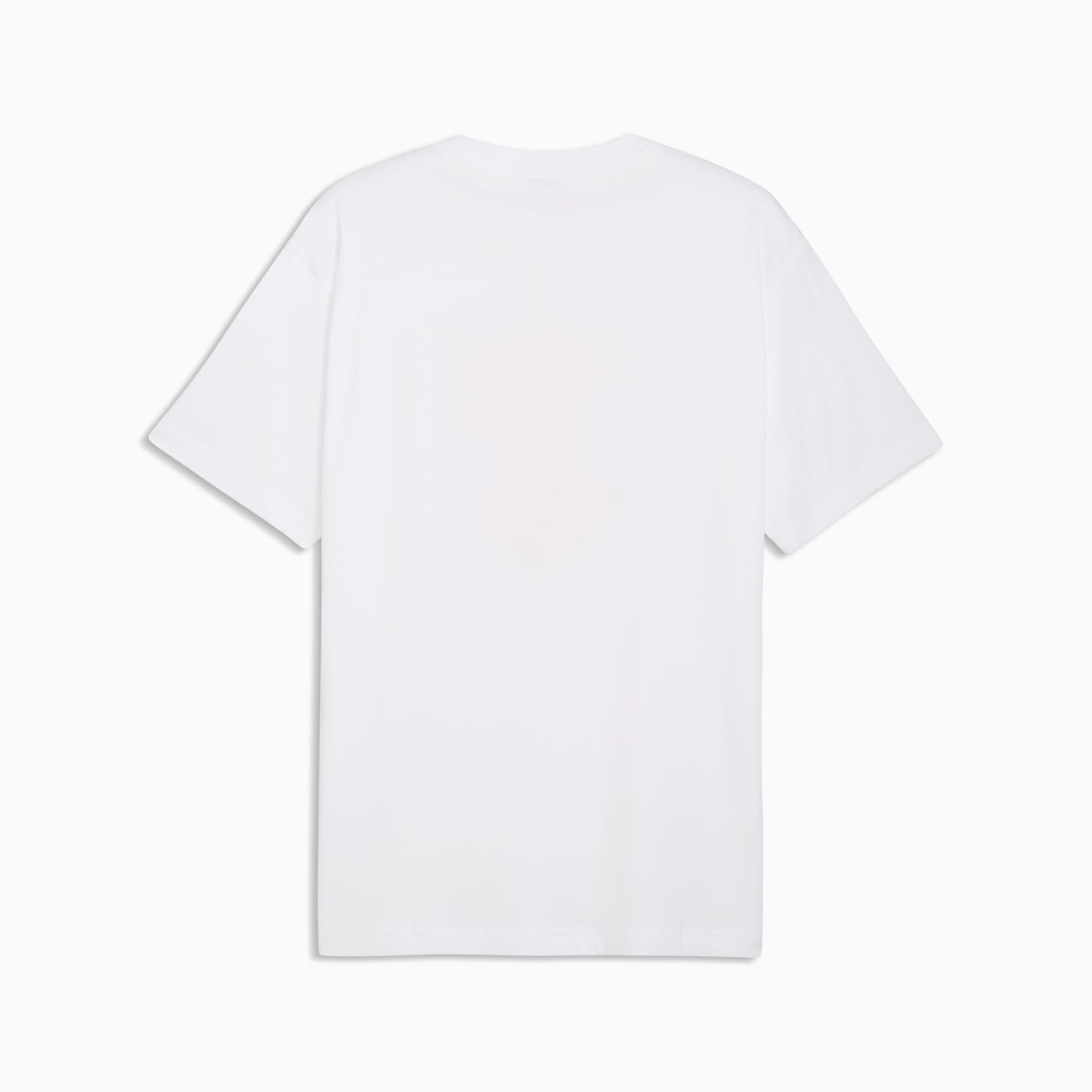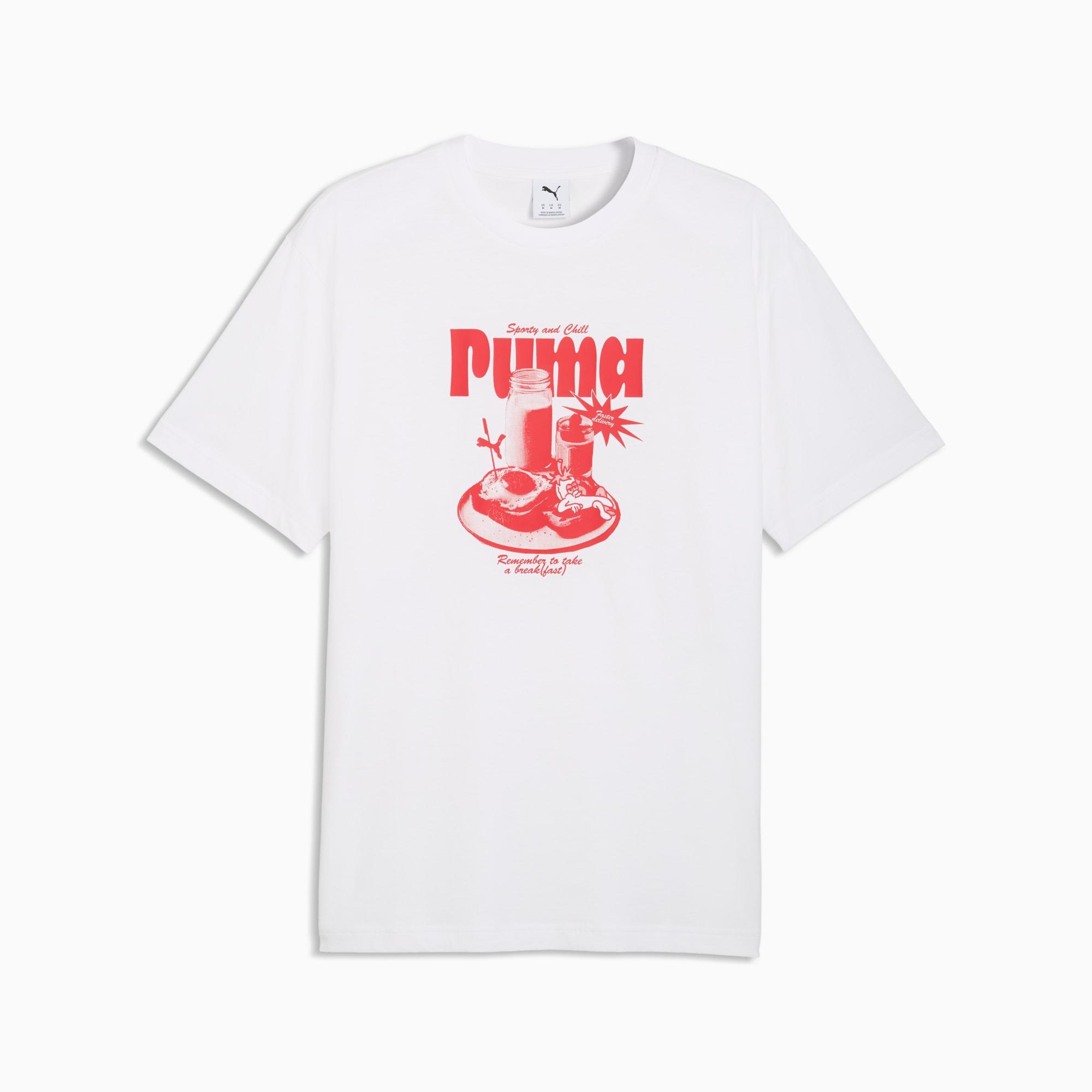 descriptionPUMA's collection of Graphic tees blend creative graphics with simple style, creating comfortable pieces that make a statement. From abstract patterns to iconic logos, each design brings a unique twist. No matter where your day takes you, these graphics elevate your look with effortless cool.Style: 634432_02Color: PUMA Whitemeasure & sizeModel informationModel is 6' 3" tall and is wearing size M.features & benefitsMade with at least 20% recycled cotton.detailsFit: RelaxedMain material type: Single jerseyNeck: Crew neckShort sleevesLength: Regularmaterials & careMaterial informationShell: 100% cottonRib: 80% cotton, 20% polyesterCare instructionsWash with similar coloursExclusive of DecorationDo not dry cleanUse detergent for coloursWash and iron inside out