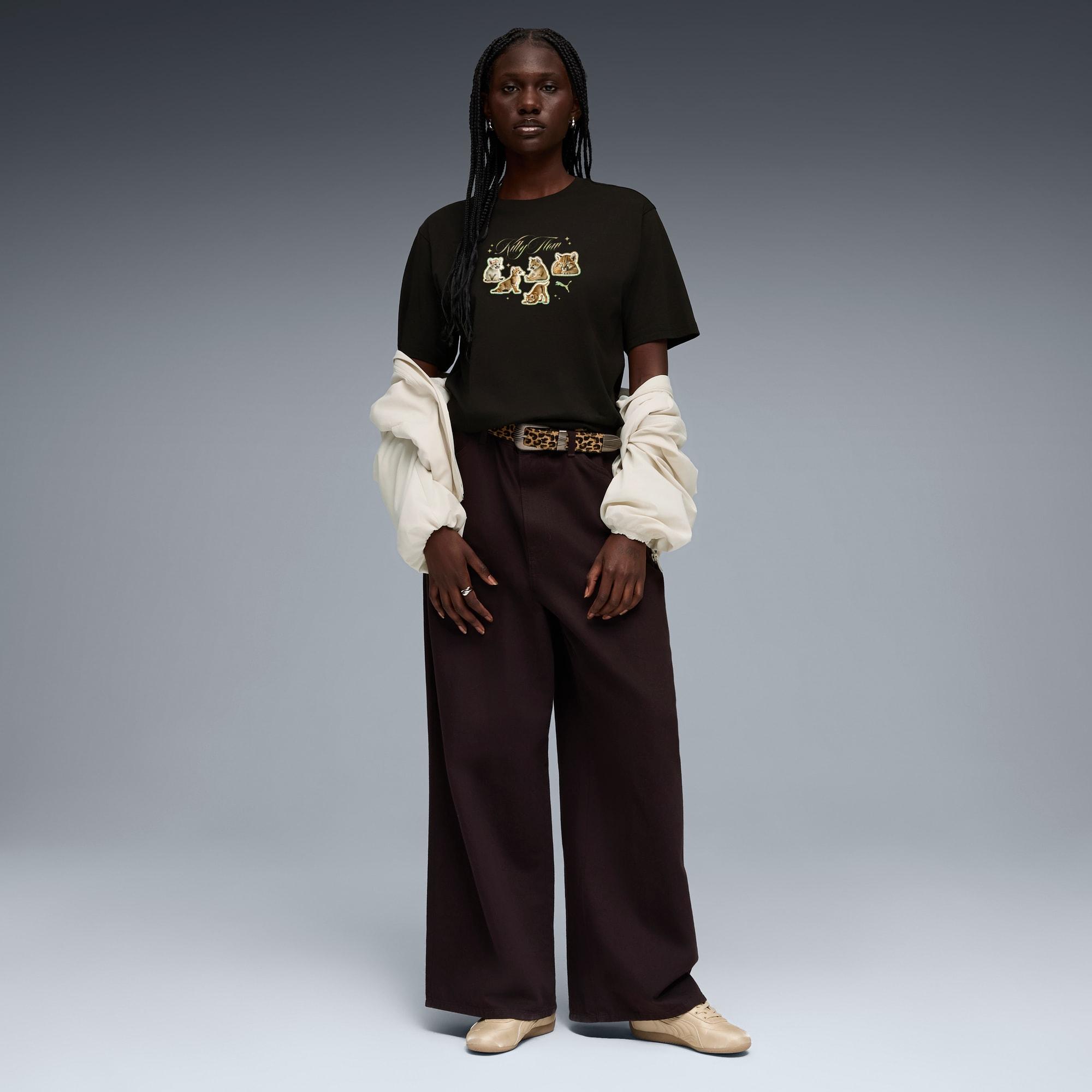 descriptionPUMA's collection of Graphic tees blend creative graphics with simple style, creating comfortable pieces that make a statement. From abstract patterns to iconic logos, each design brings a unique twist. No matter where your day takes you, these graphics elevate your look with effortless cool.Style: 634589_01Color: PUMA Blackmeasure & sizeModel informationModel is 5' 9" tall and is wearing size S.features & benefitsMade with at least 20% recycled cotton.detailsFit: RelaxedMain material type: Single jerseyNeck: Crew neckShort sleevesLength: Regularmaterials & careMaterial informationShell: 100% cottonRib: 80% cotton, 20% polyesterCare instructionsDo not iron printDo not dry cleanWash with similar coloursExclusive of DecorationUse detergent for coloursWash and iron inside out