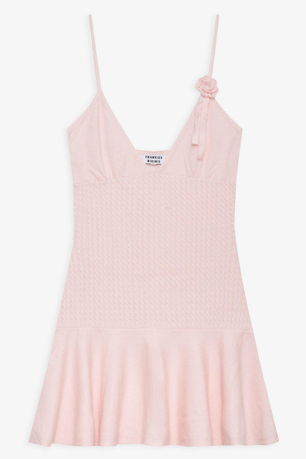 Chase away the chill in the softest cable knit dress of the season. Houston is designed in our newest Rose Quartz color, with a custom knit rose & ribbon detail, adjustable shoulder straps, and our signature cloud knit fabric. You won't regret embracing the coziest dress of the season. Fabric 50% Viscose + 27% Polyamide + 23% Polyester Cable Cloud Knit Fabric Model Size & Fit This style runs true to size Ava is wearing a size Small Height 5' 5'' (166.5cm) Bust 30.5'' (77cm) , Waist 23.5'' (60cm), Hips 33'' (84cm)