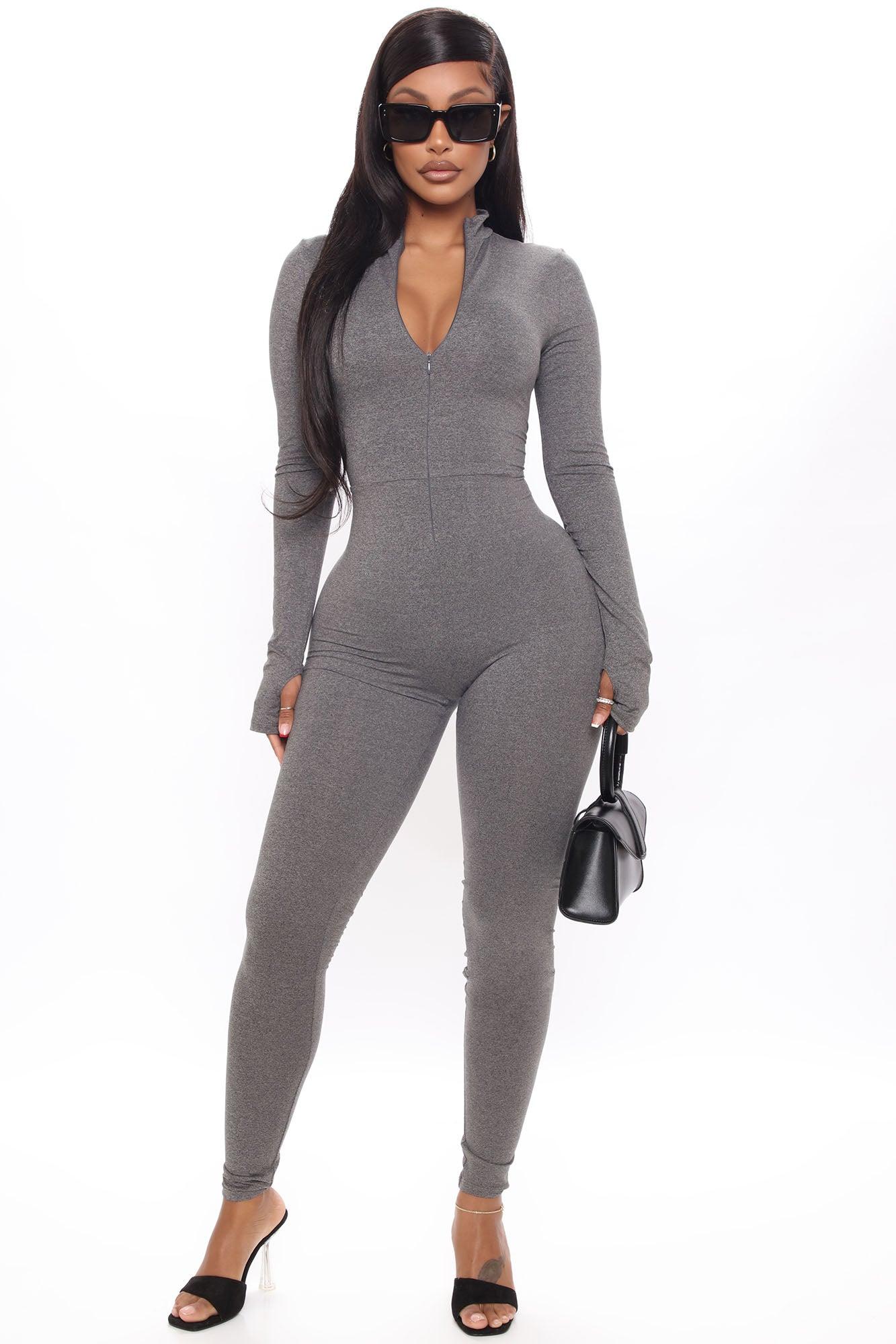 Houston Hottie Thumbhole Jumpsuit - Charcoal