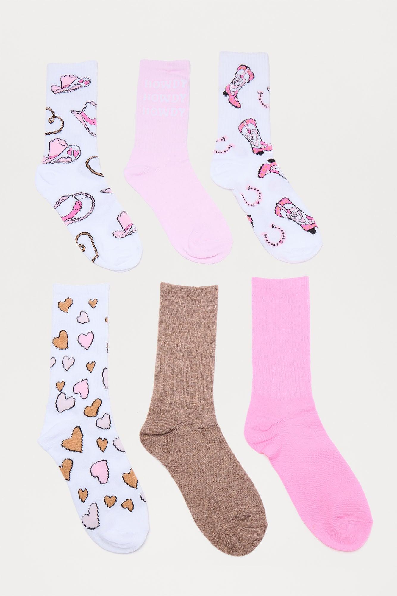 Howdy Cowgirl 6 Pack Socks - White/Pink Female