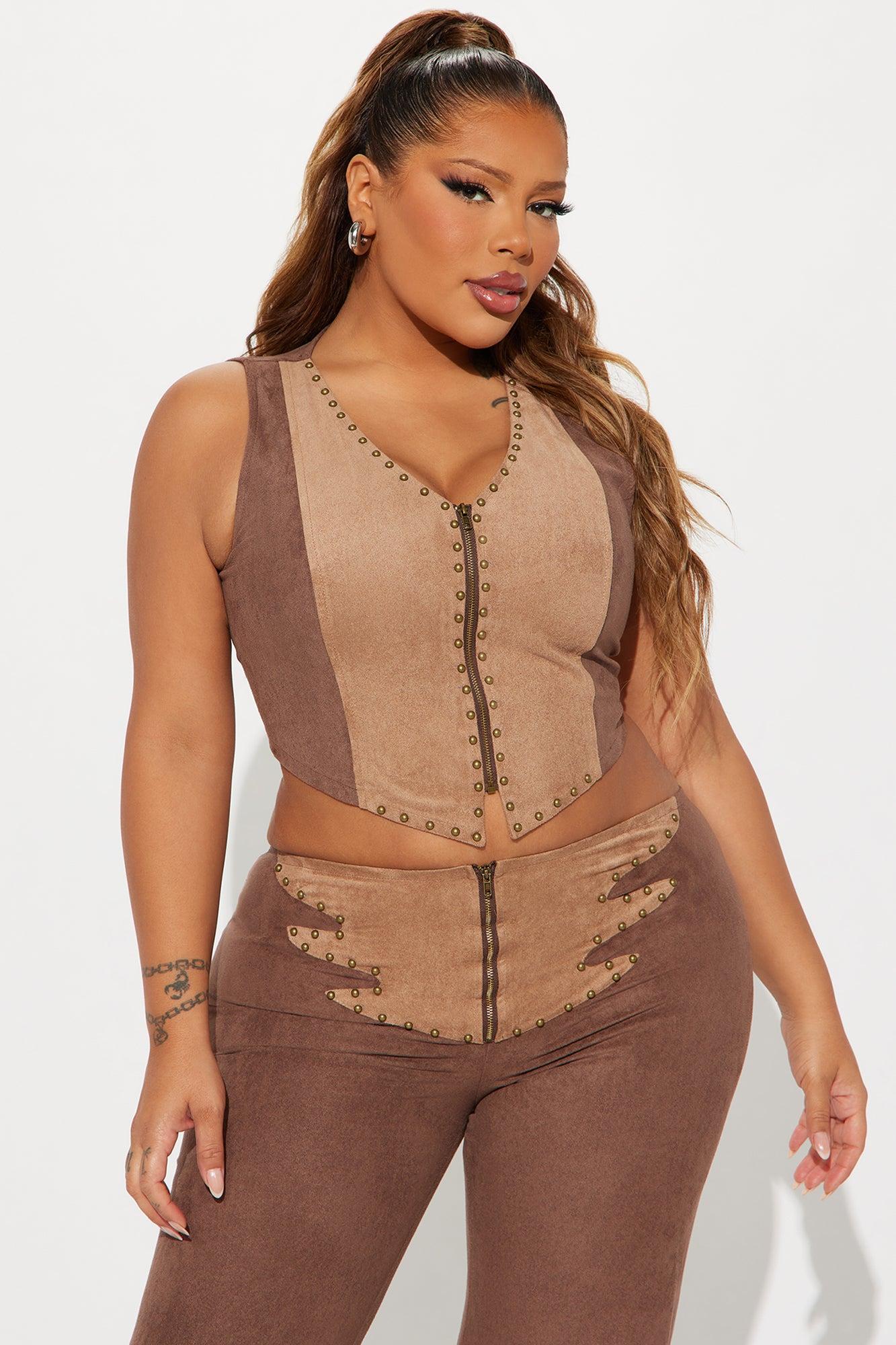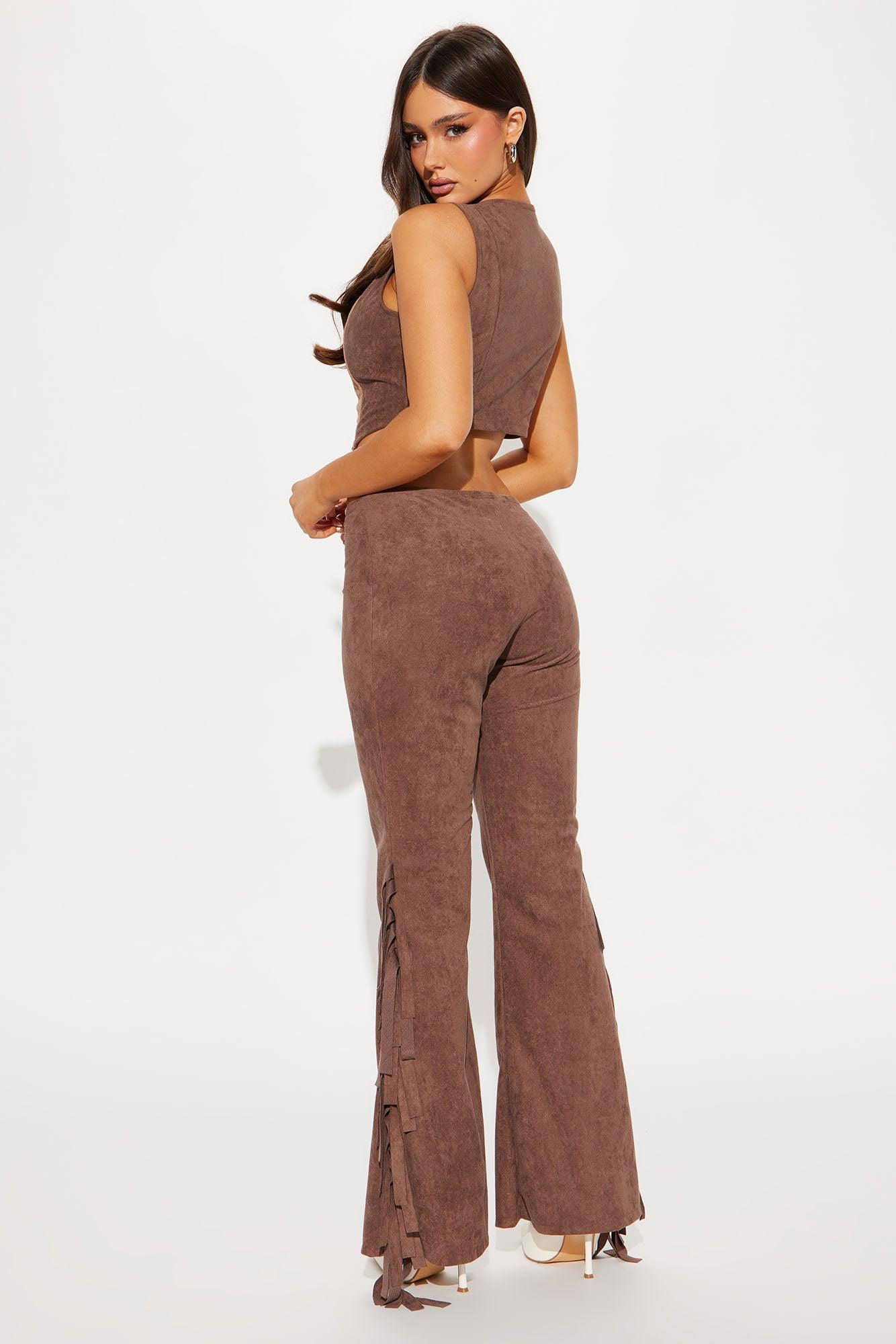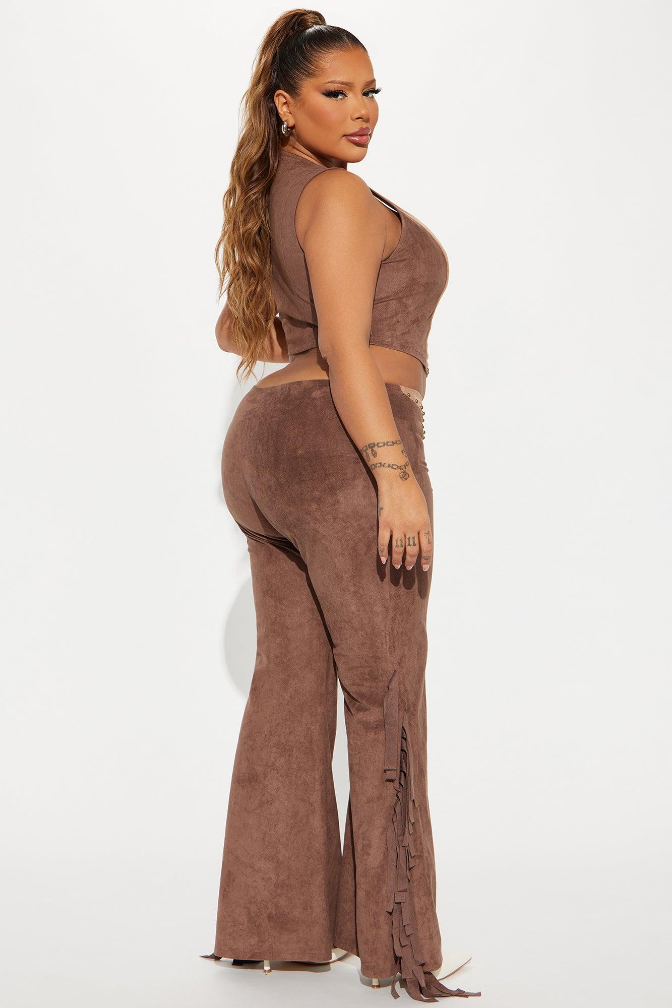 Howdy Partner Faux Suede Fringe Pant Set - Brown