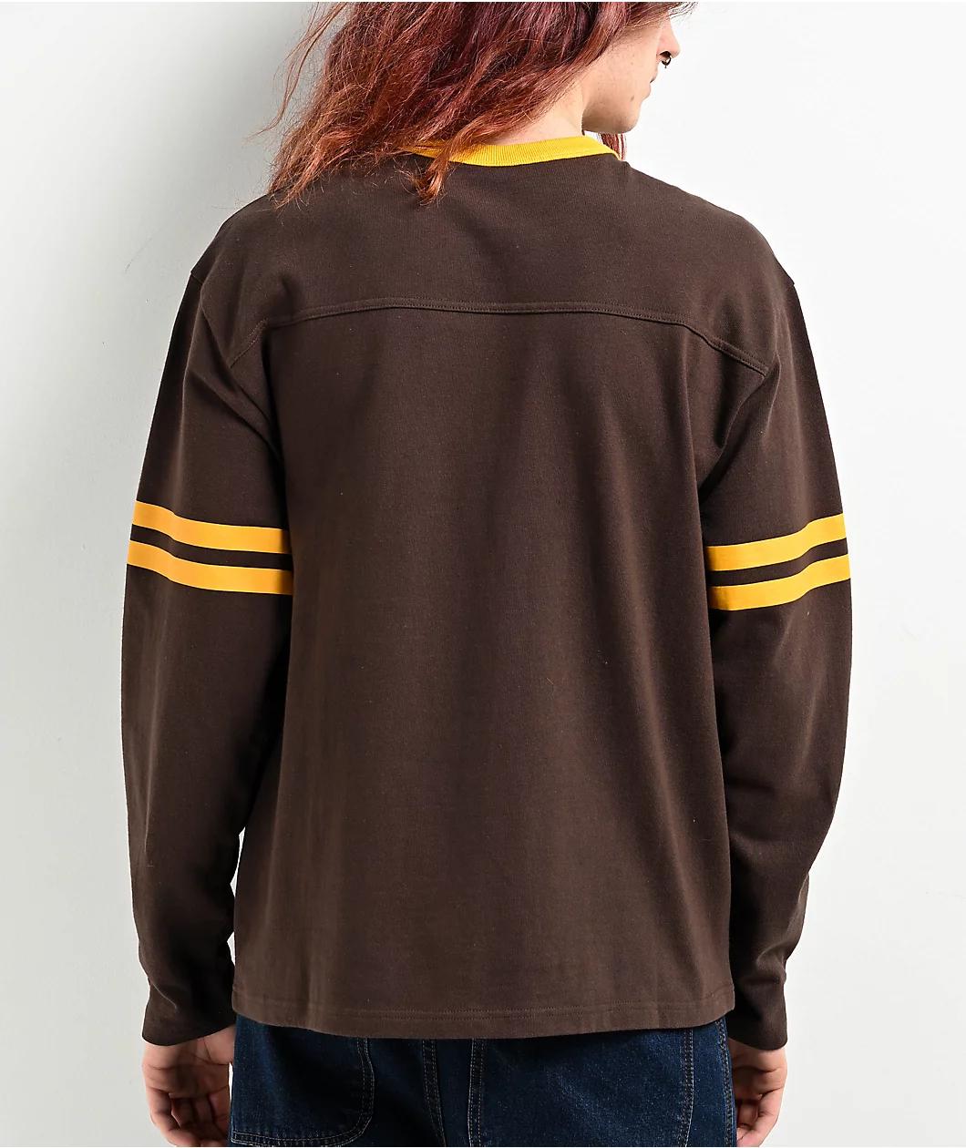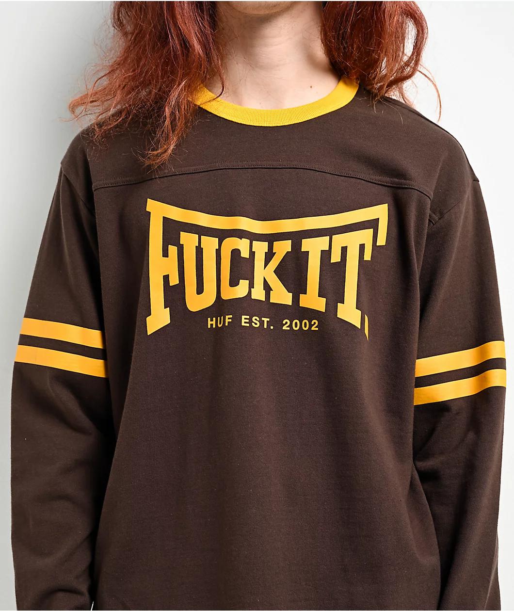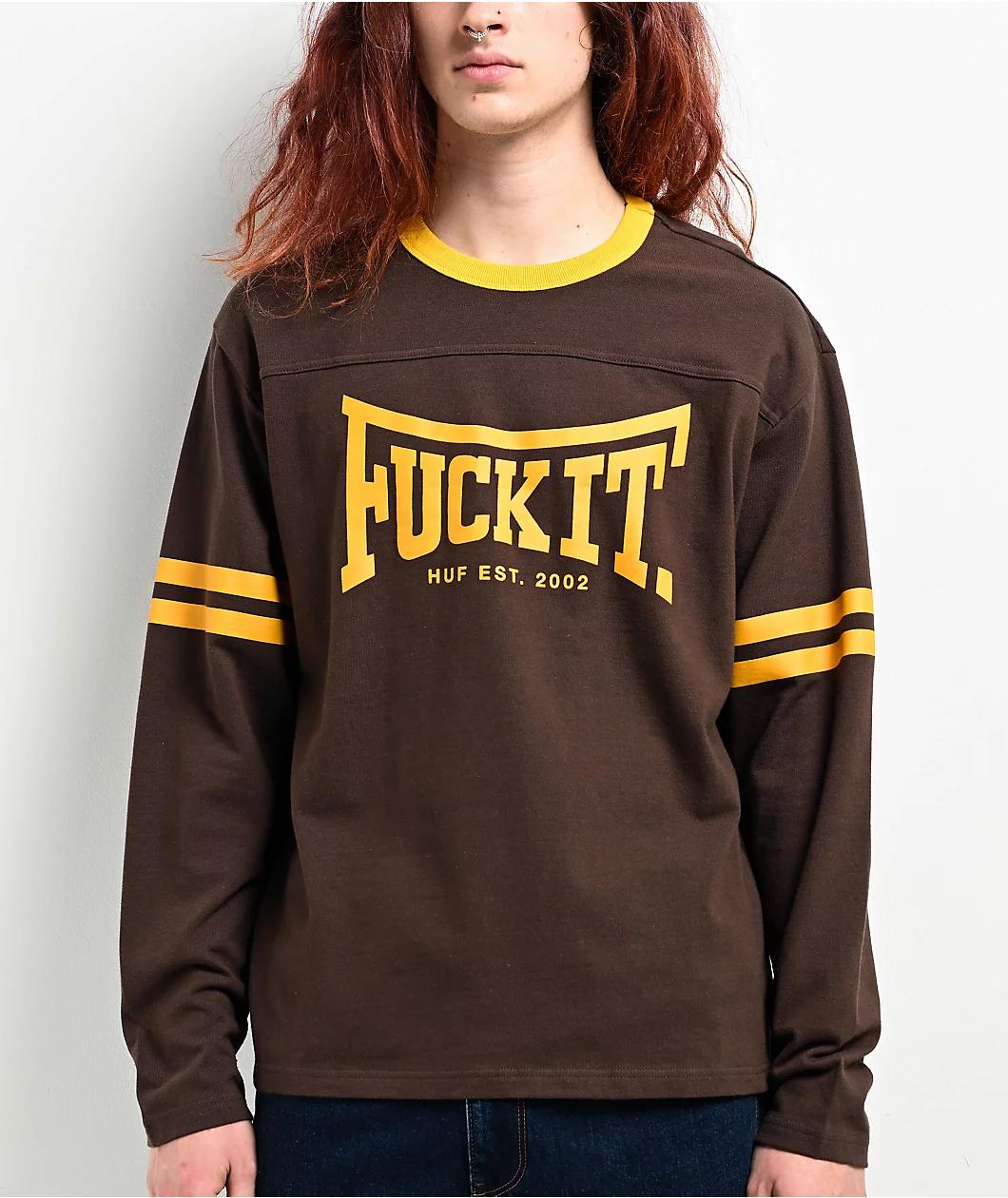 Taking inspiration from classic collegiate styles, the HUF's Fuck It football shirt arrives in a brown colorway with yellow accents. The long sleeve is made using heavyweight cotton, and features puff-printed branding with bold yellow striping.