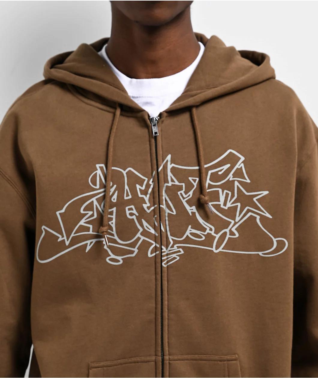 HUF continues their streetwear legacy with the Outline hoodie in an earthy brown color and a full zip closure for easy on and off. The long sleeve zip-down sweatshirt boasts hollow graffiti branding in a technical handstyle across the chest for a str