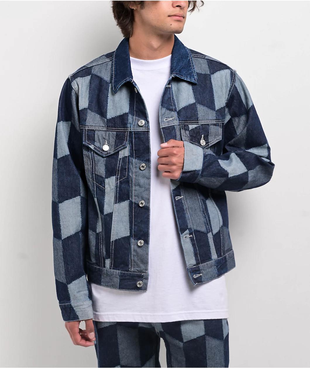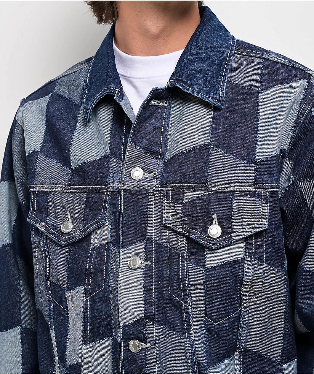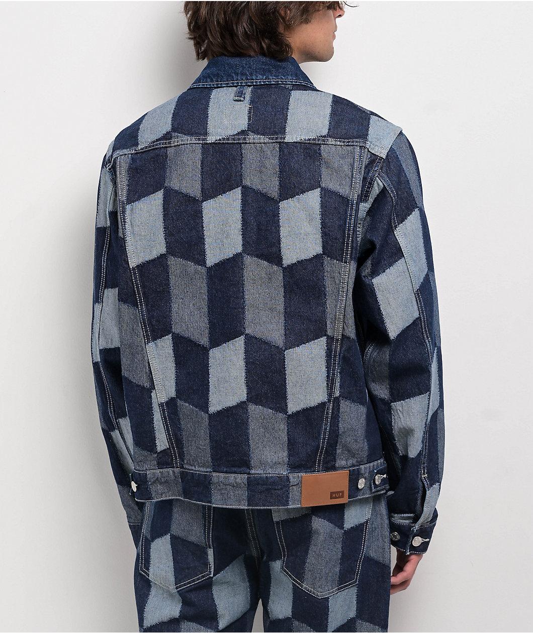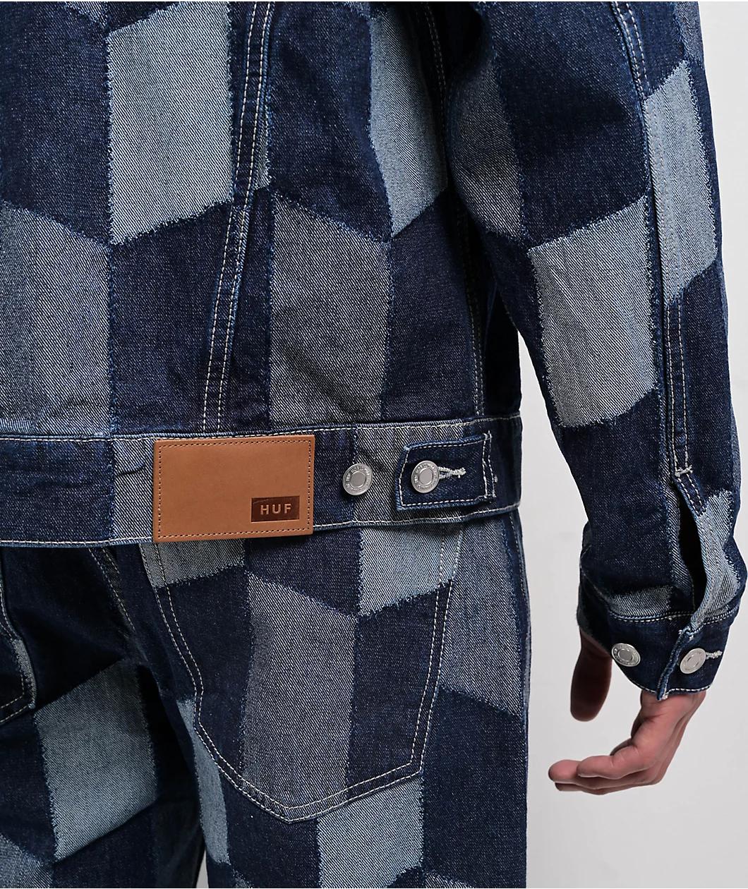 Add a unique flair to your outfit with the Patchwork blue denim jacket from skateboarding lifestyle brand HUF. Made from durable 13.5oz cotton, this jean jacket utilizes custom jacquard patchwork for a cut-and-sew look. Inspired by classic silhouette